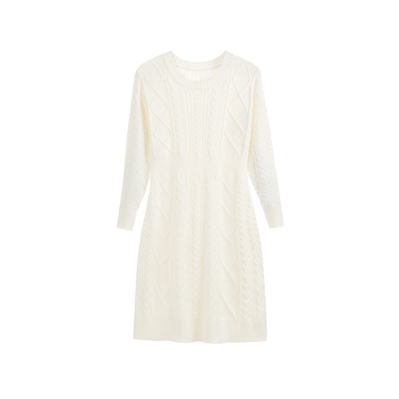 名媛小香风白色针织连衣裙女冬季女装新款纯色长袖内搭包臀毛衣裙