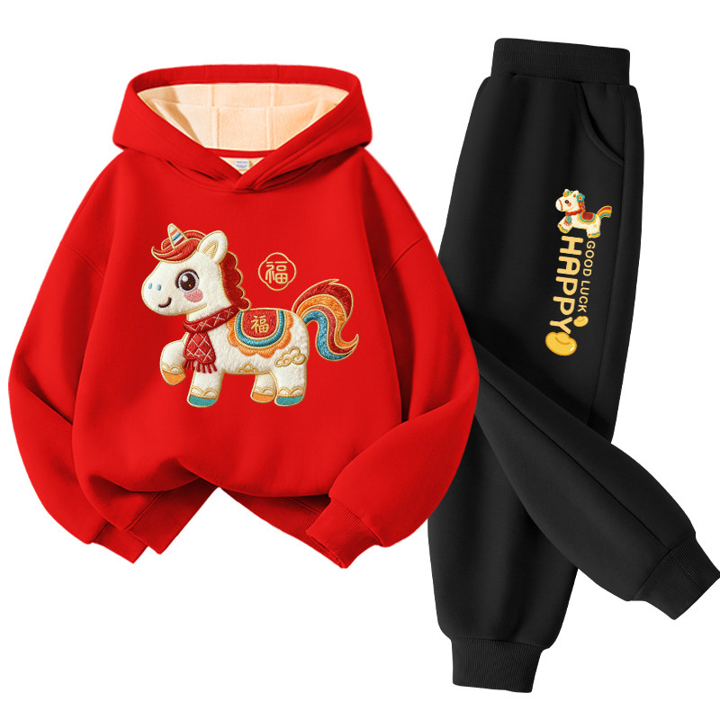 真维斯女童本命年12岁套装女孩冬装新年红色卫衣马年儿童过年衣服