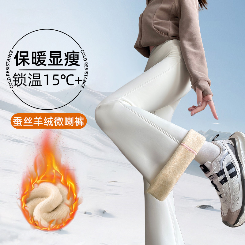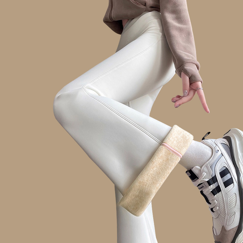 高个子白色冬季加绒微喇鲨鱼裤女外穿175加长款高腰紧身收腹瑜伽