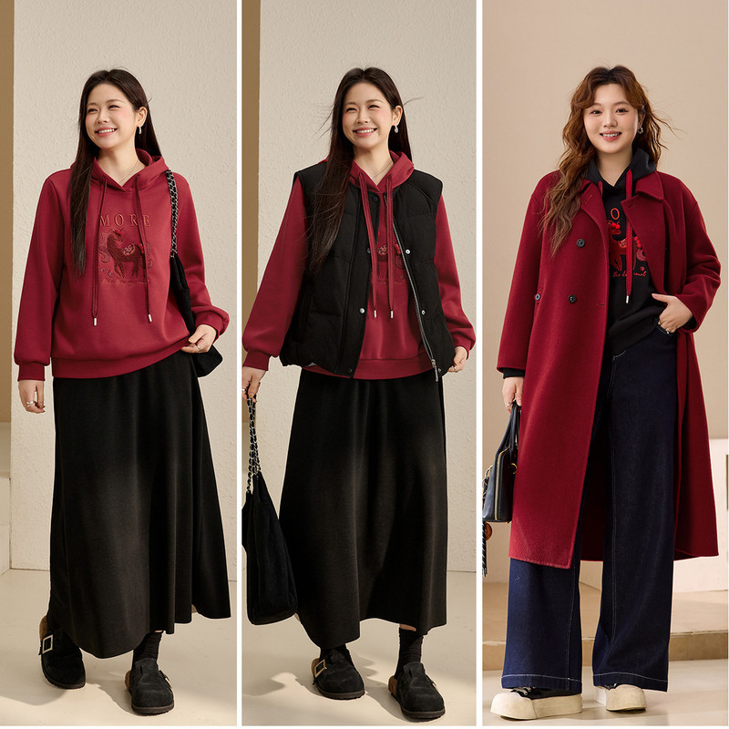 【加绒卫衣】纤莉秀大码女装连帽慵舒适百搭上衣胖mm2025冬装新款