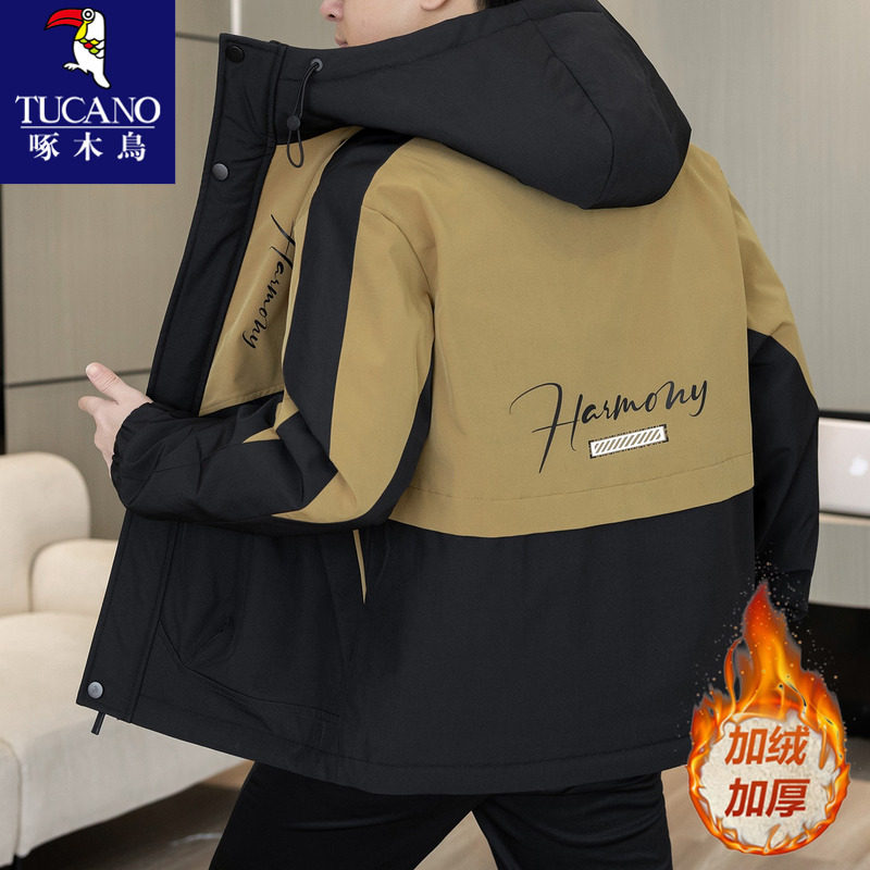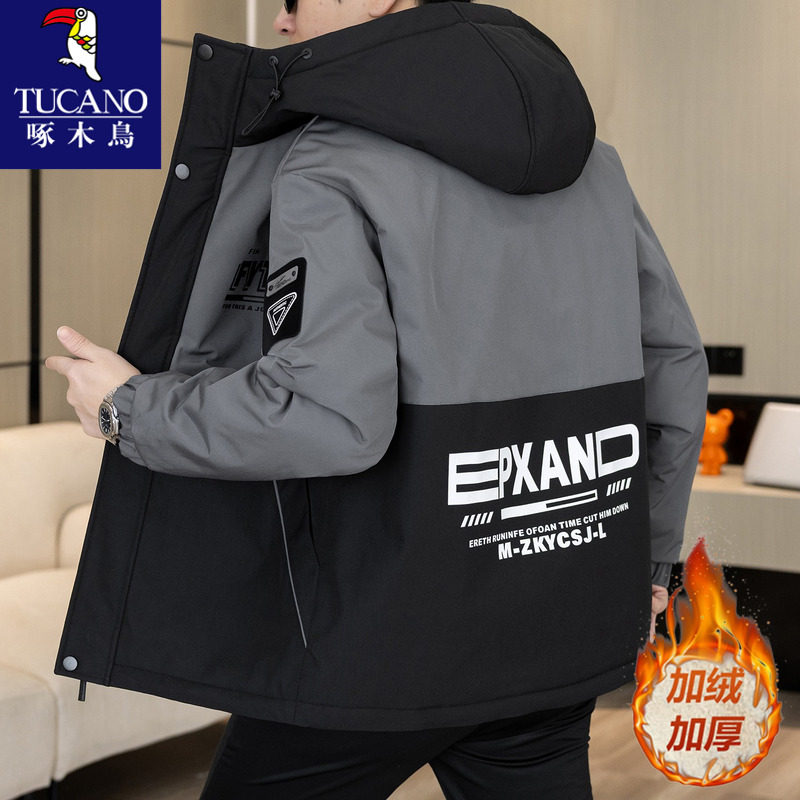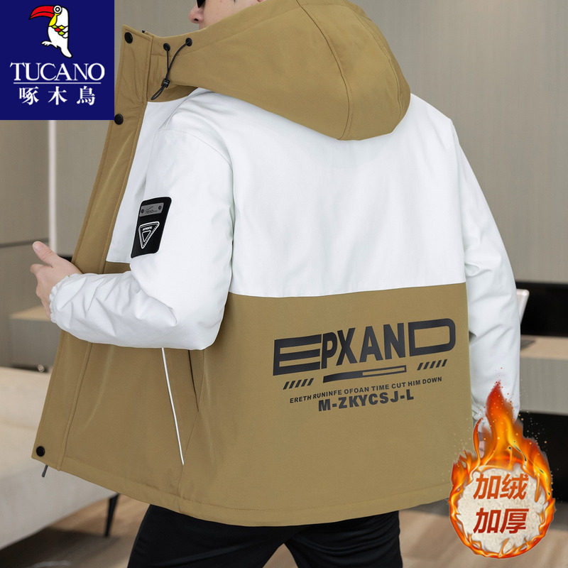 啄木鸟加绒加厚外套男款秋冬季青少年夹克棉服男生冬装保暖冲锋衣