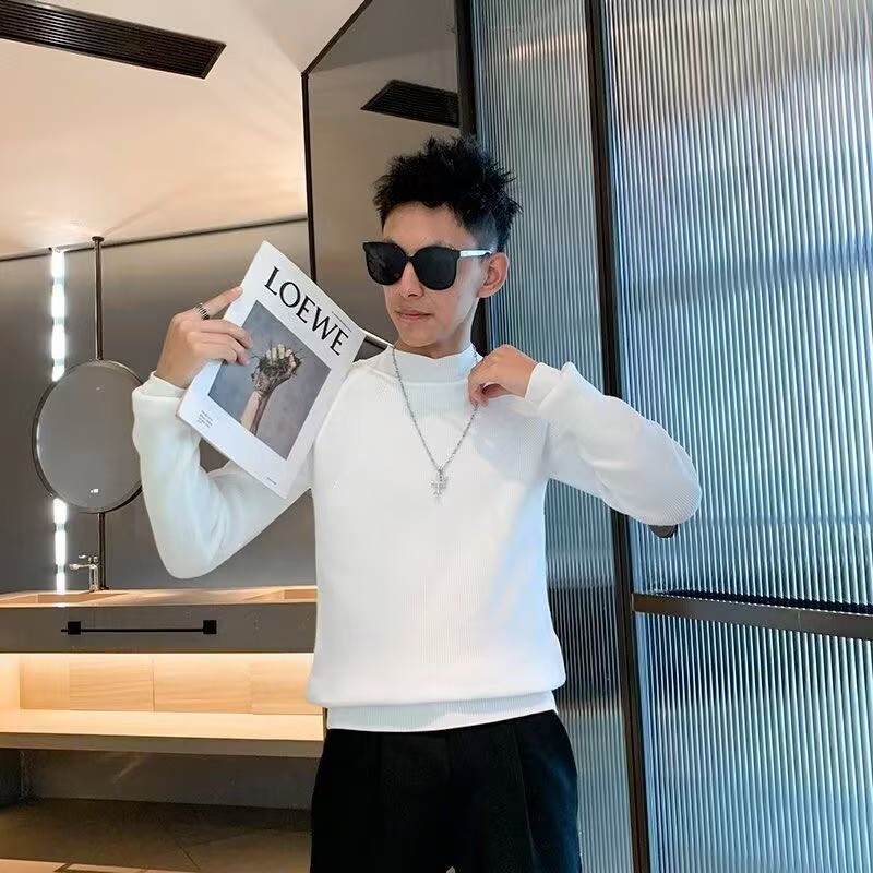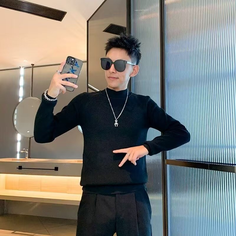 半高领毛衣男款士秋冬季针织打底衫内搭加大加厚保暖修身中领黑色