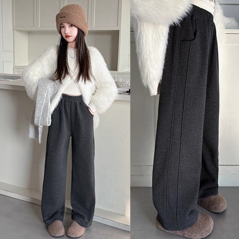 女童超好看加绒裤子冬装2025新款儿童阔腿裤初中生女孩大童运动裤