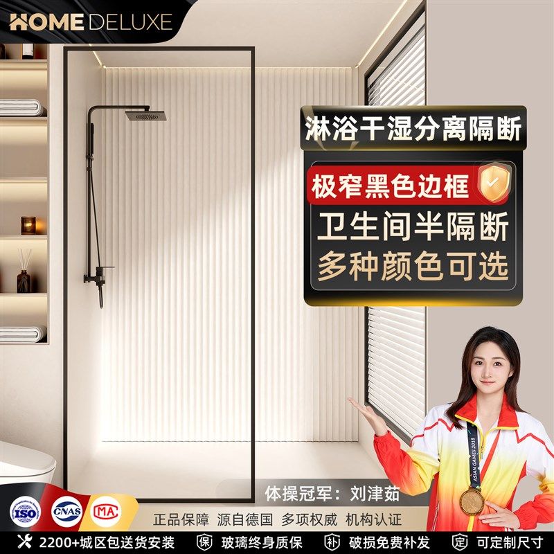 干湿分离隔断玻璃门屏风洗澡化妆室淋浴房浴室开放式简易浴屏定制