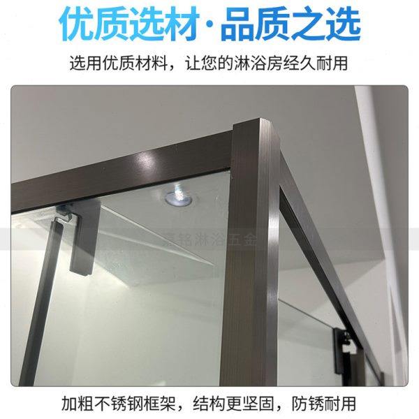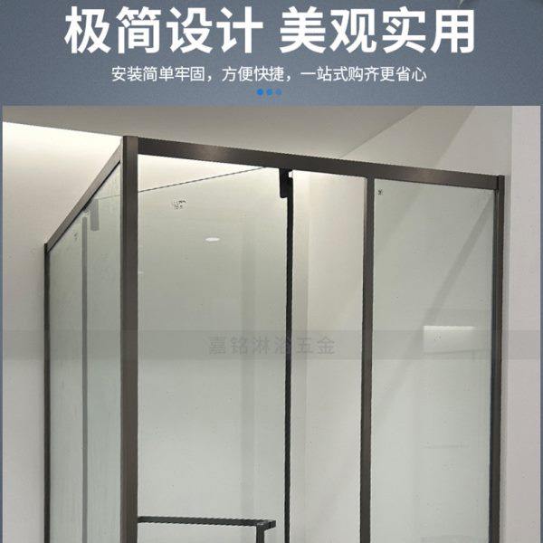极窄极简淋浴房隔断浴室玻璃门干湿分离七字型侧移门全套五金配件