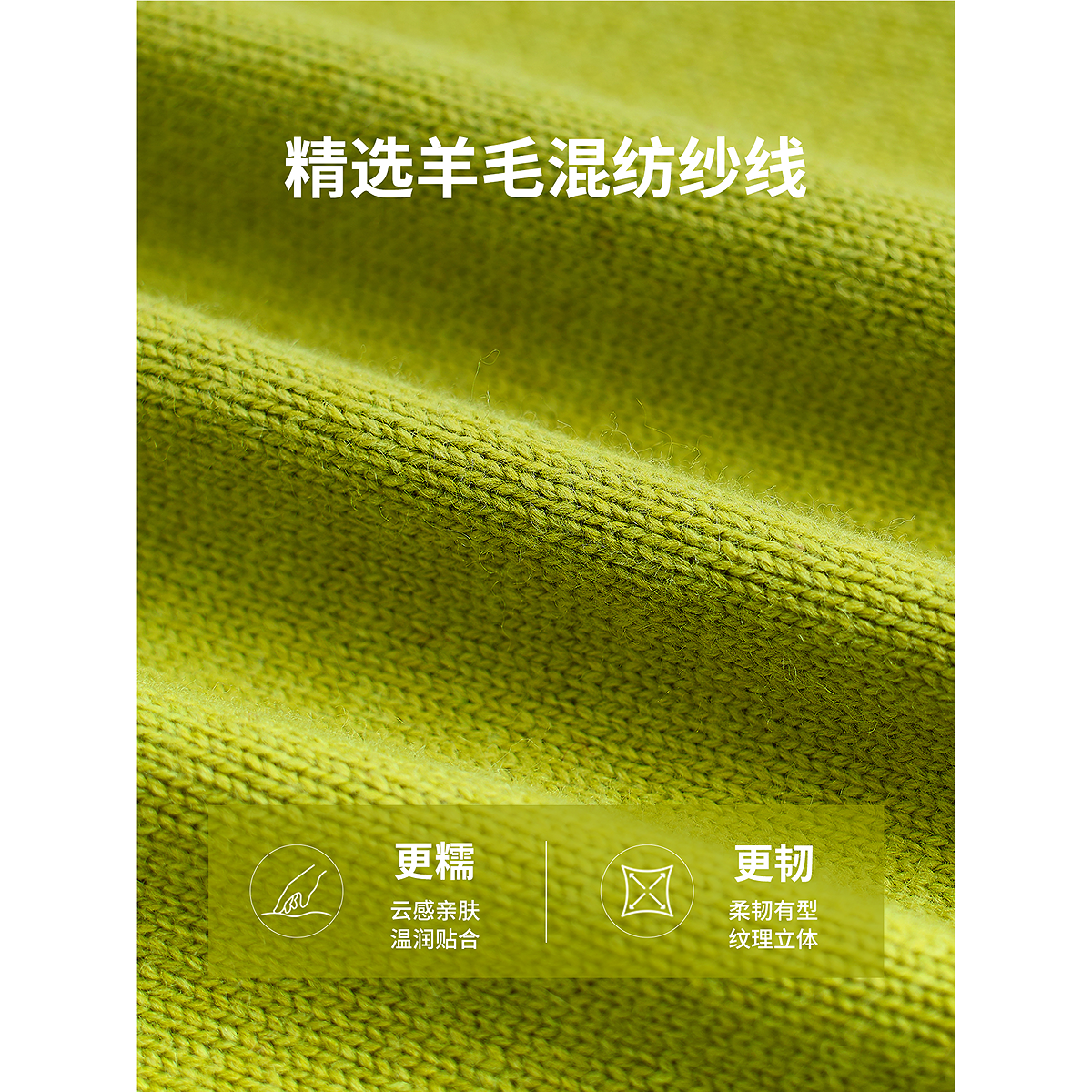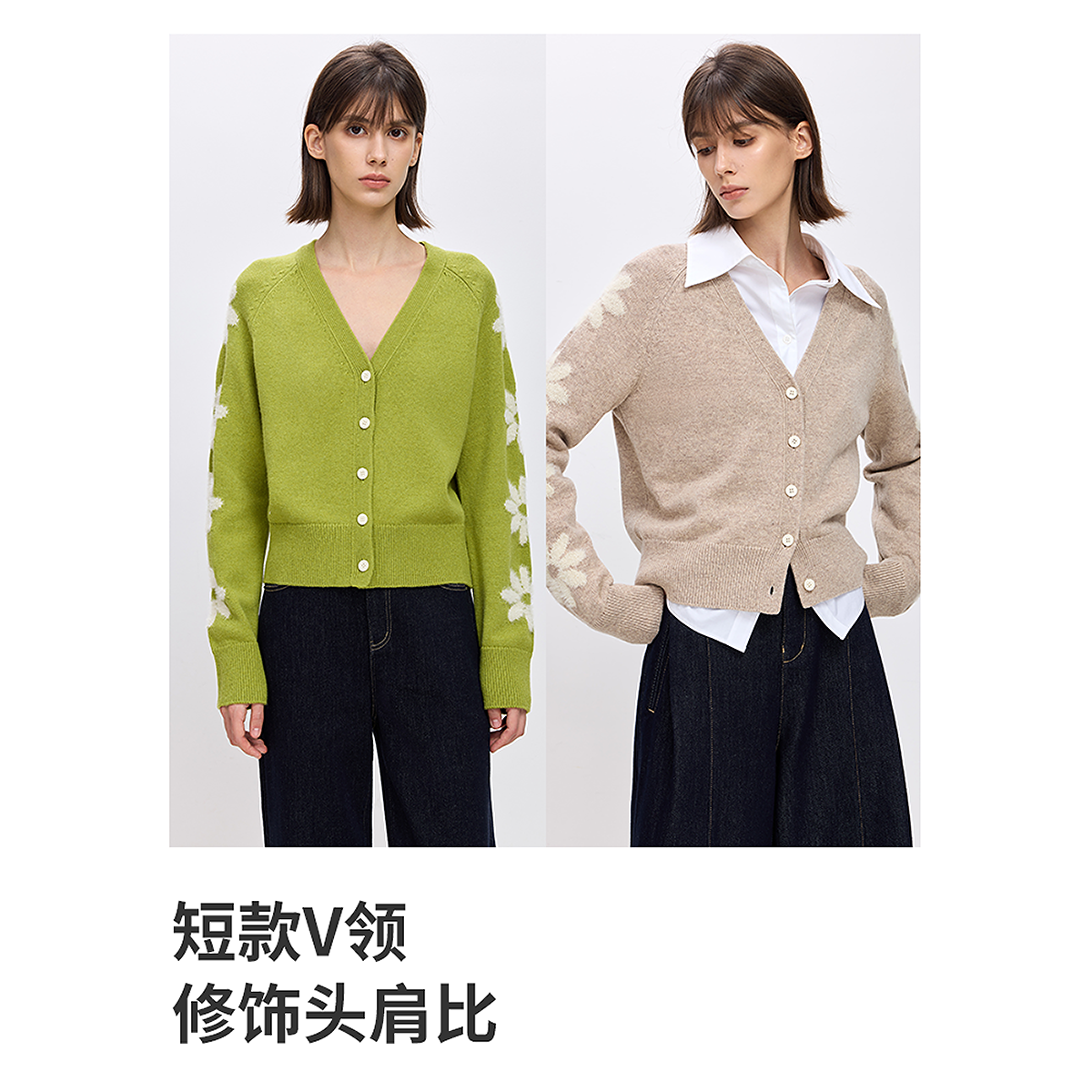 LILY2026春新款女装羊毛混纺撞色提花上衣V领针织开衫毛衣外套