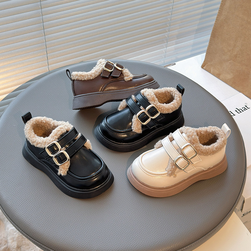 真皮女童英伦风加绒乐福鞋冬季新款厚底小皮鞋保暖毛毛鞋防滑棉鞋