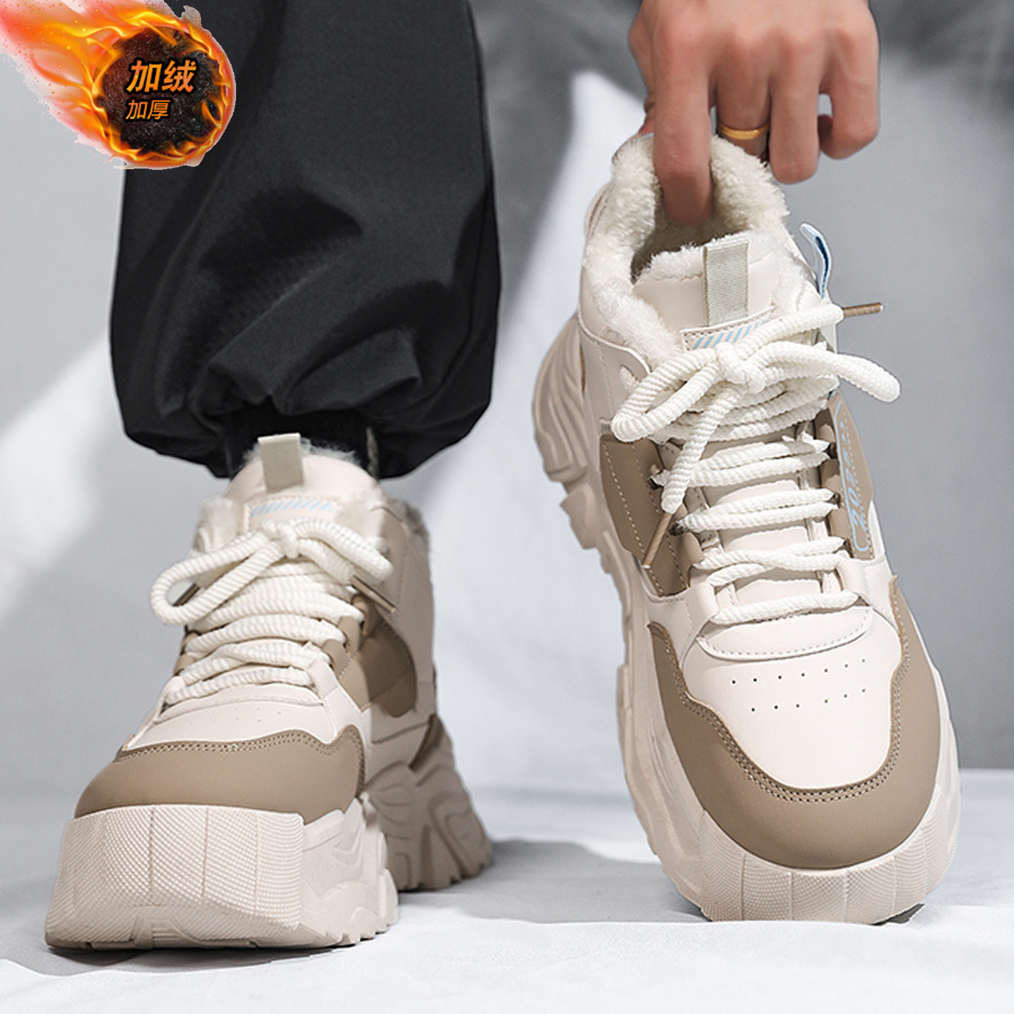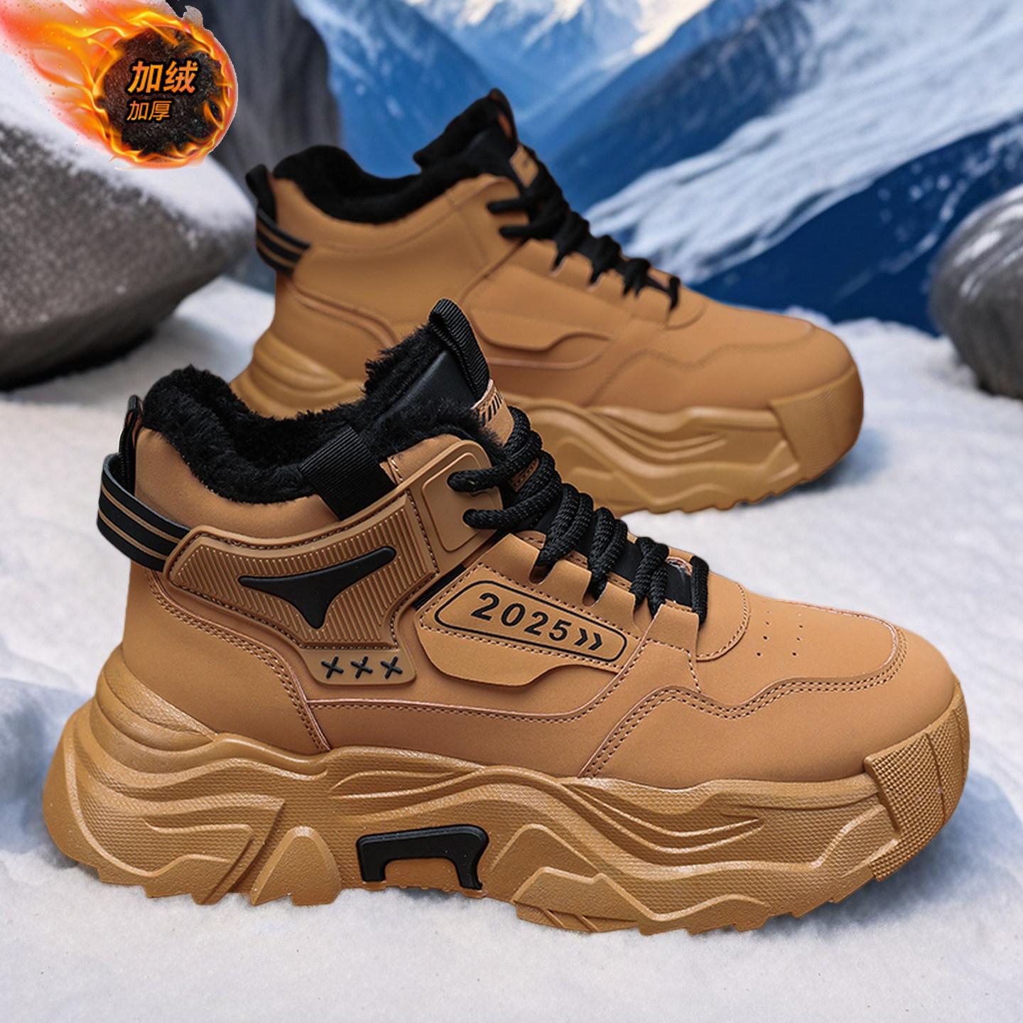 保暧大棉鞋子2025新款男款冬季皮面青少年学生加绒加厚高帮雪地靴