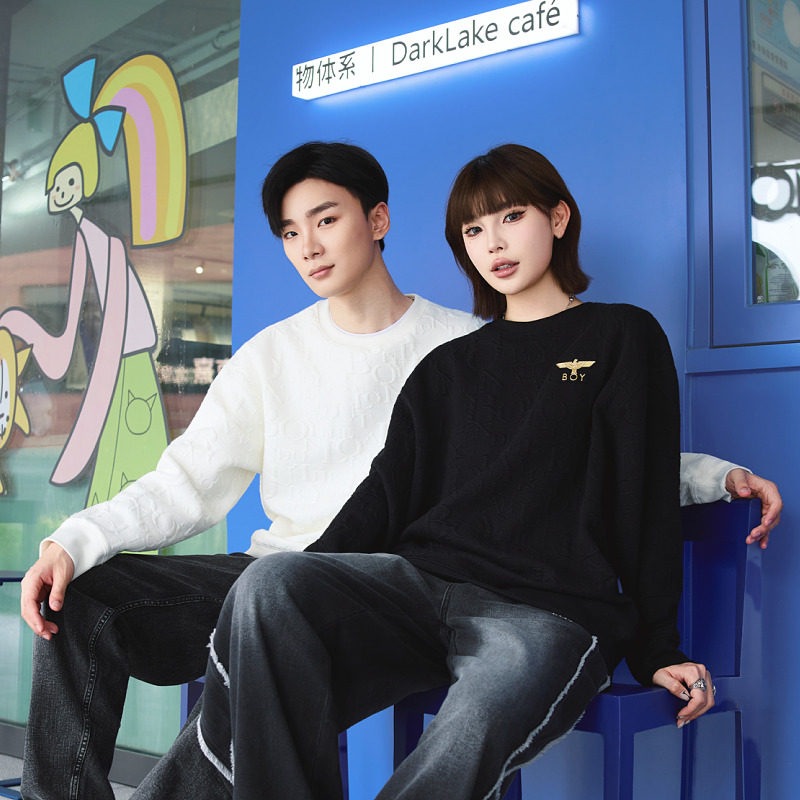 【简约春日】BOYLONDON春季男女款提花潮牌圆领宽松卫衣N03029