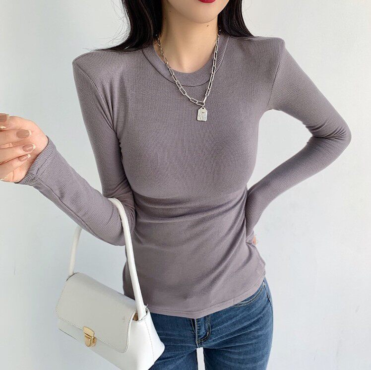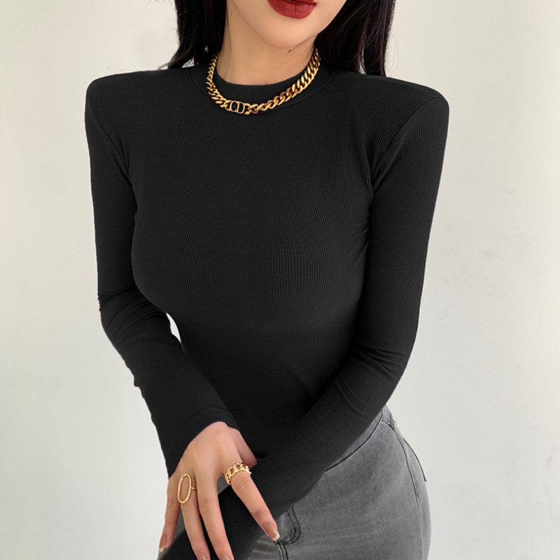 2025秋冬装韩版新款垫肩打底衫内搭紧身上衣修身显瘦长袖t恤女潮