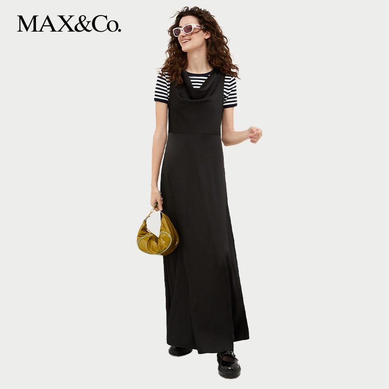 MAX&Co.春夏气质无袖缎面长款收腰连衣裙6221114
