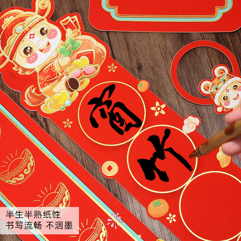 2026马年镂空蜡染对联纸卡纸套装彩绘万年红春联纸空白手写创意宣纸对联专用纸七言毛笔斗方福字红纸新年装饰