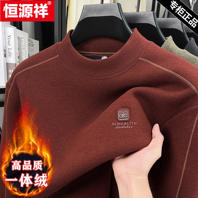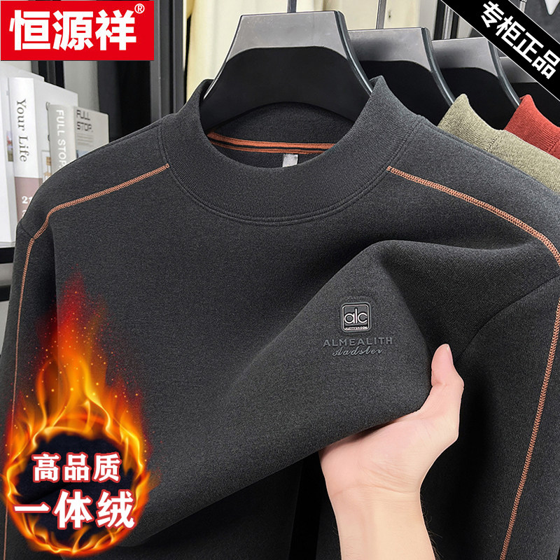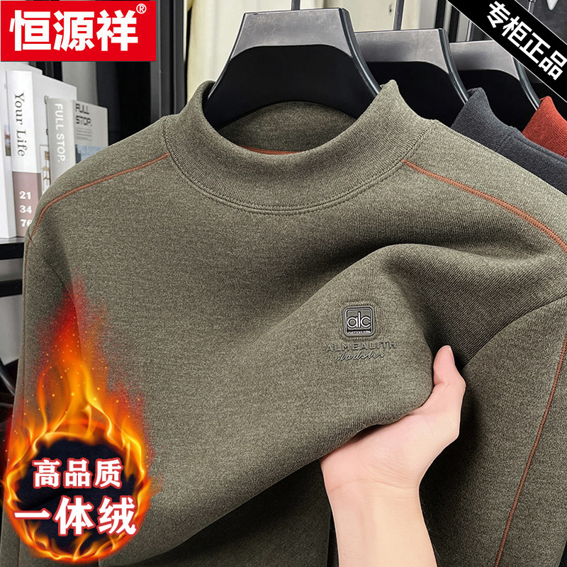 恒源祥德绒半高领打底衫男加绒加厚磨毛内搭保暖秋衣男士冬装卫衣