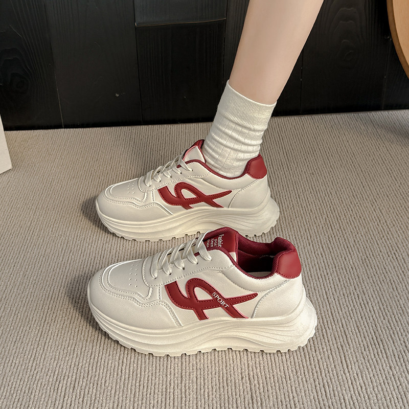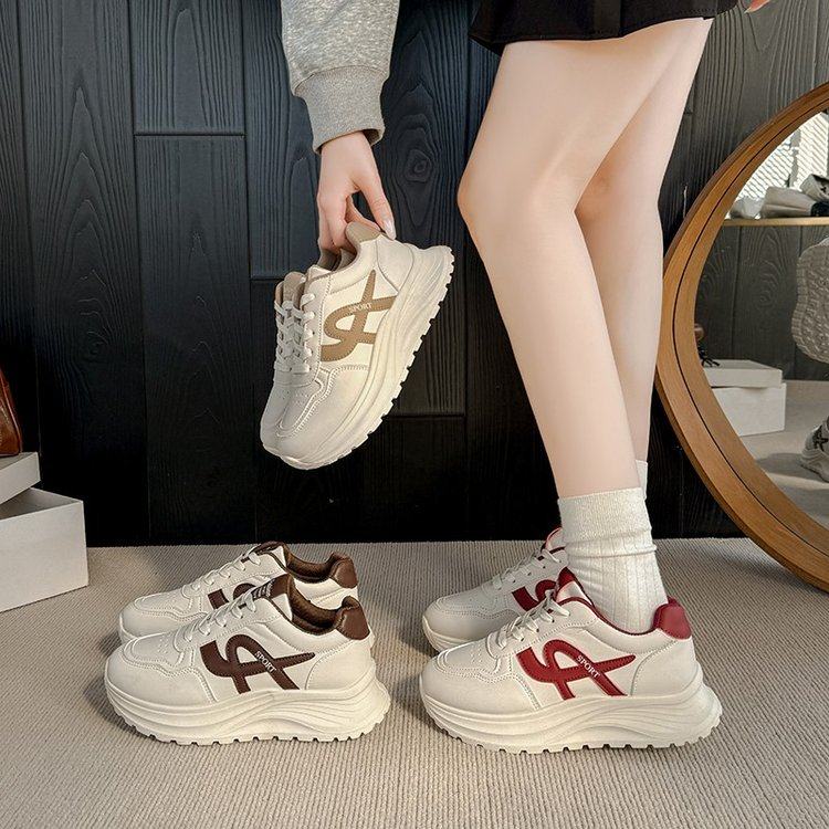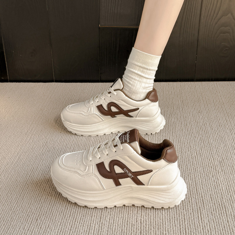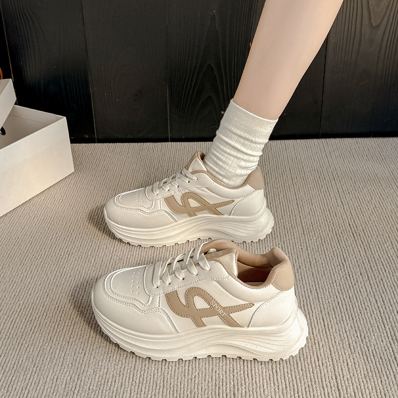 女童鞋春秋白色鞋子休闲运动皮面老爹鞋2026新款女款厚底增高防滑