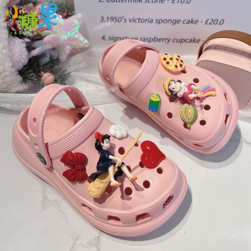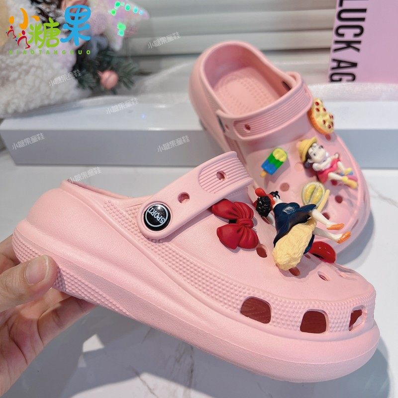 女童鞋子2026夏季新款粉色洞洞鞋外穿时尚中大童女孩厚底拖鞋增高