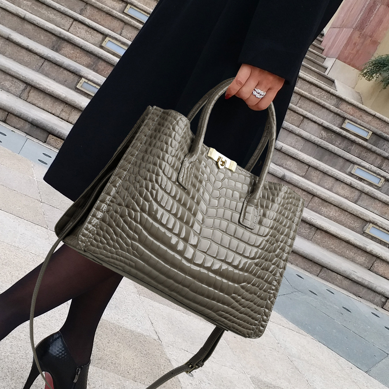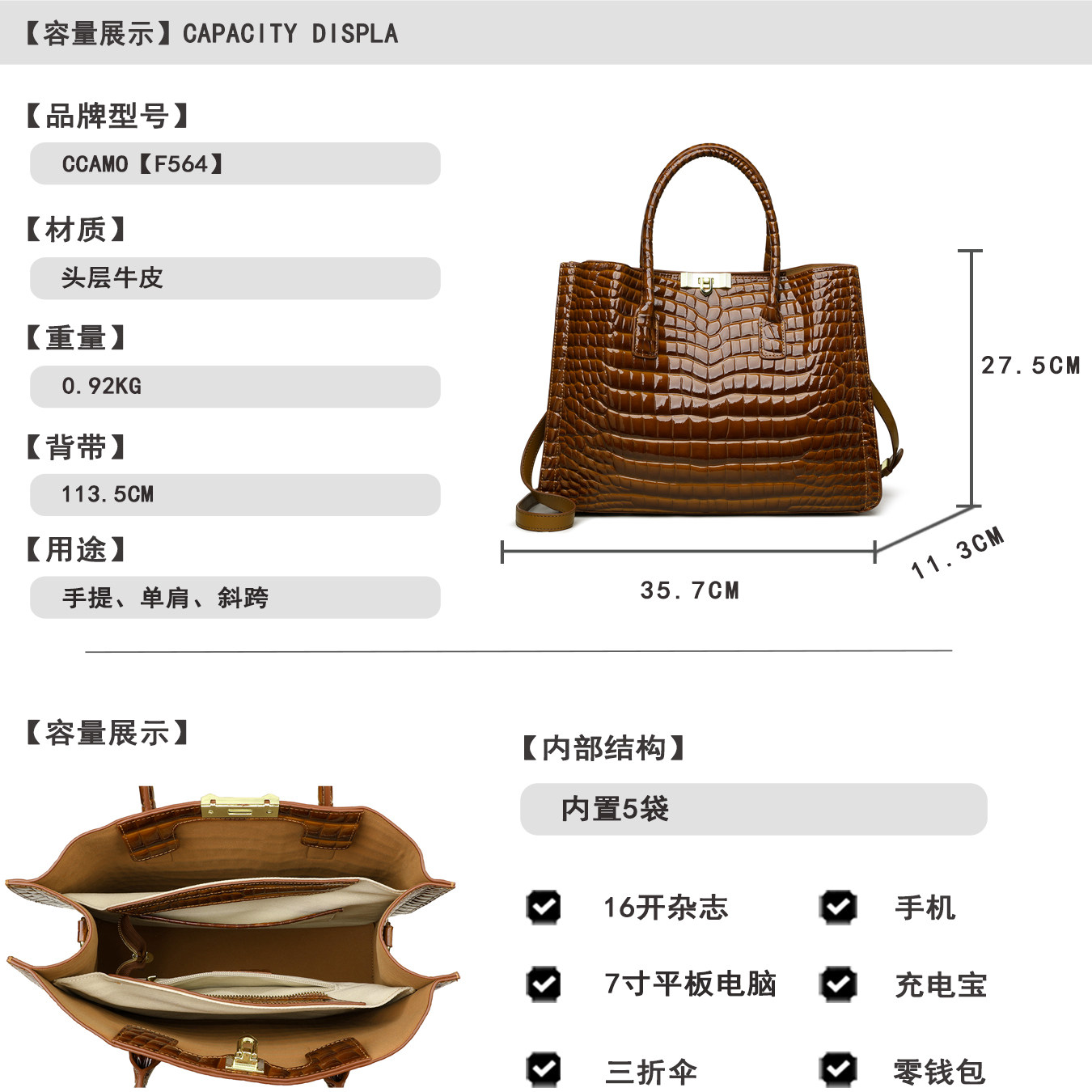 CCAMO包包女款轻奢小众鳄鱼纹包包日常通勤百搭牛皮大容量单肩包