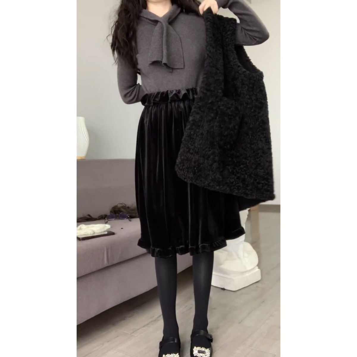 2026超火冬装一整套秋冬季羊羔毛马甲内搭上衣花苞半身裙三件套女