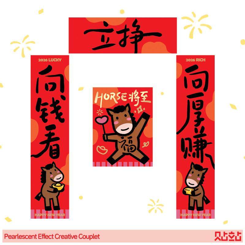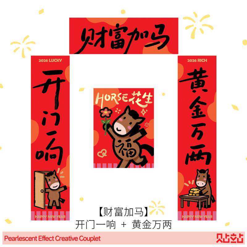 原创2026马年向钱赚向厚赚对联年轻人创意新年入户门磁吸对联春联
