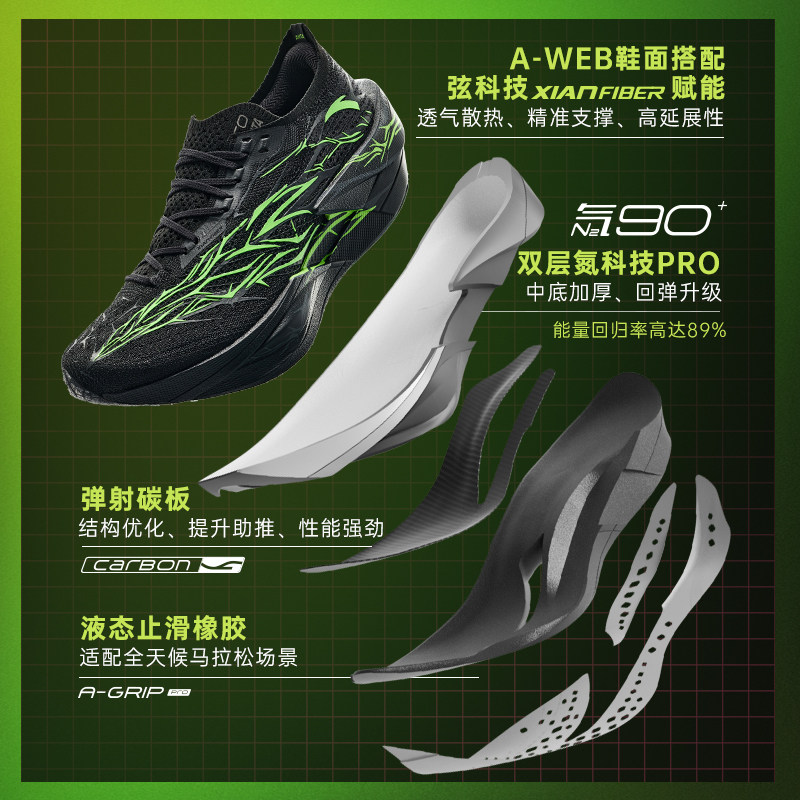 安踏C202 6代PRO跑步鞋专业碳板竞速跑鞋减震体测初中生运动鞋男