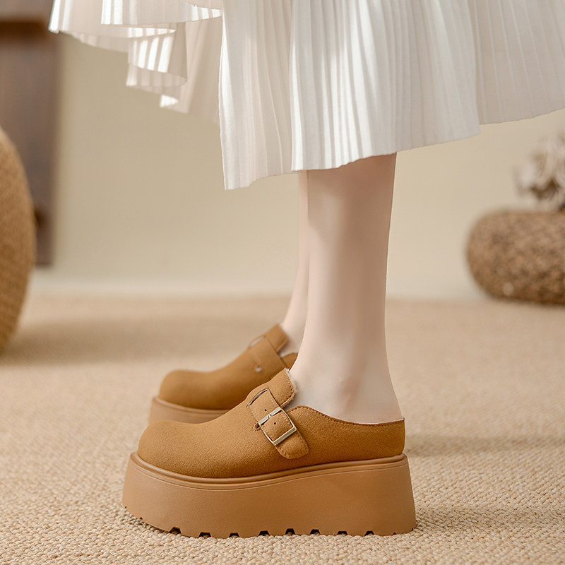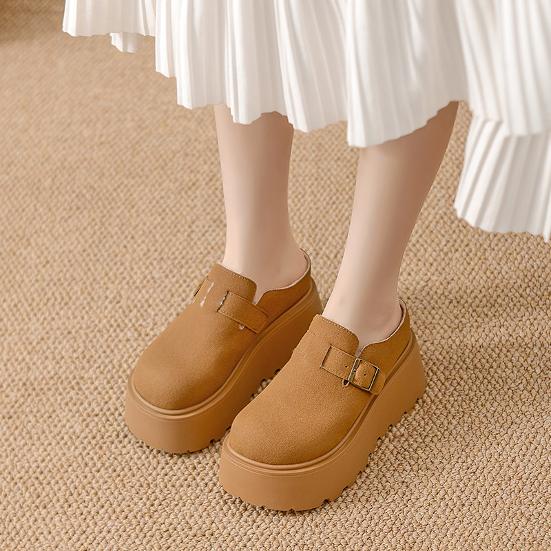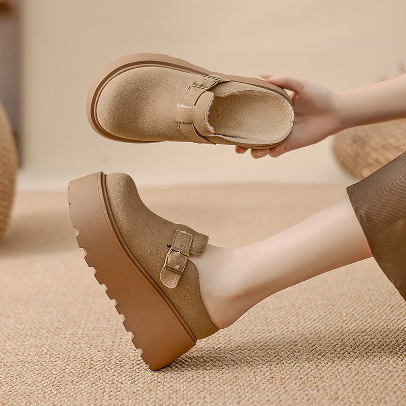 内增高半包拖鞋女冬外穿2025新款厚底勃肯鞋加绒雪地不累脚穆勒鞋