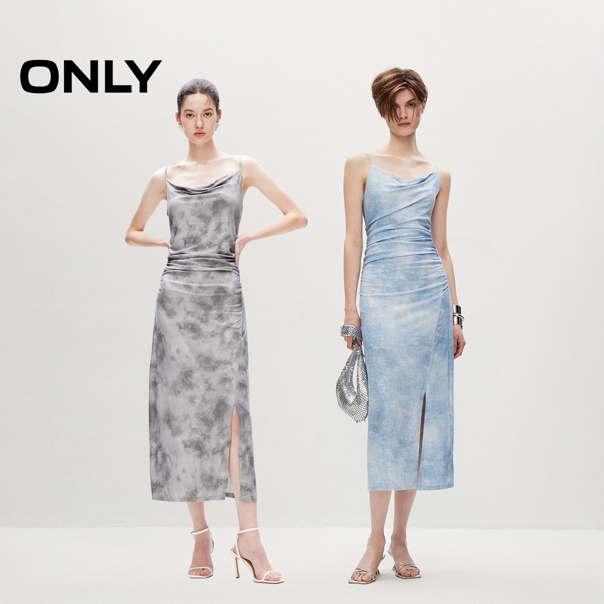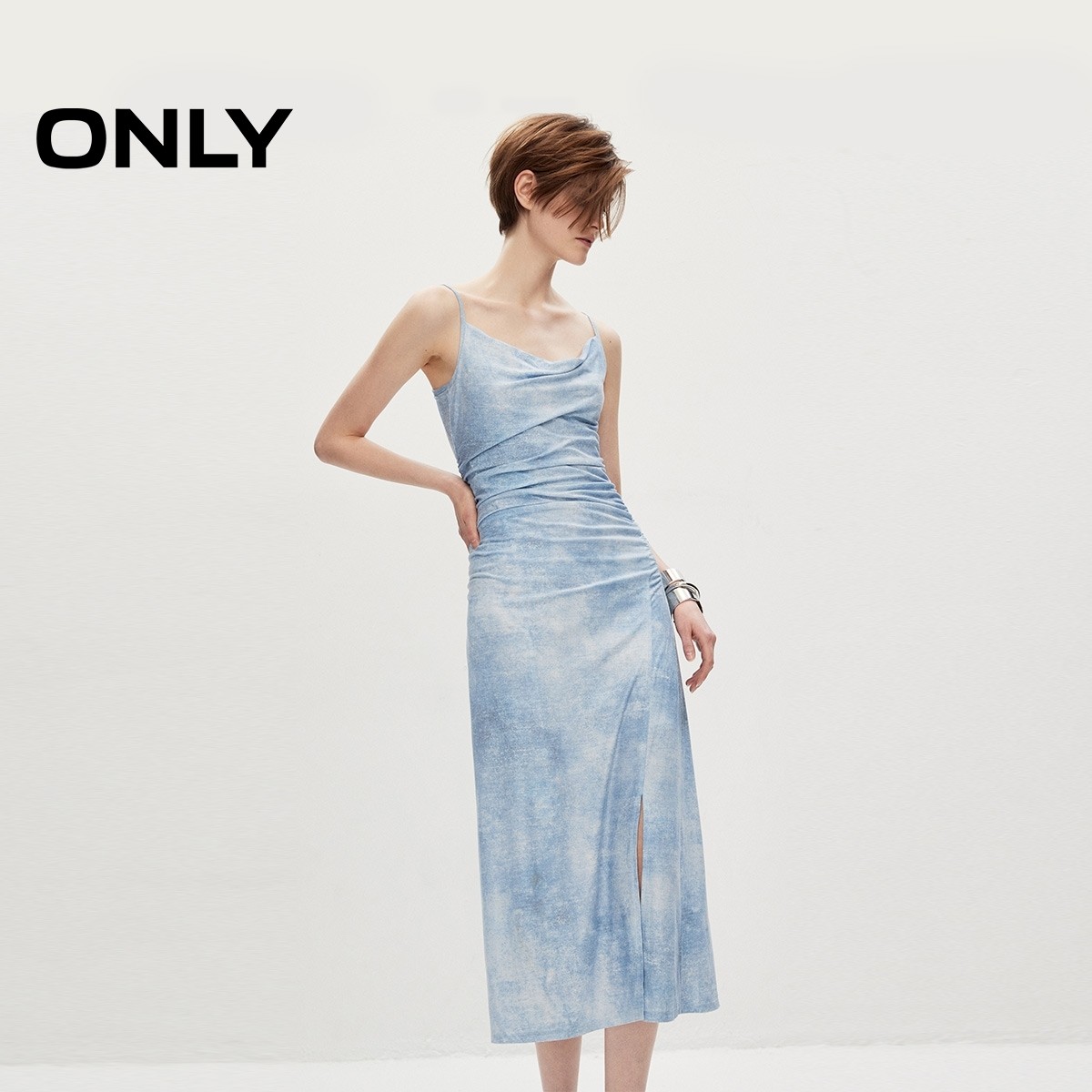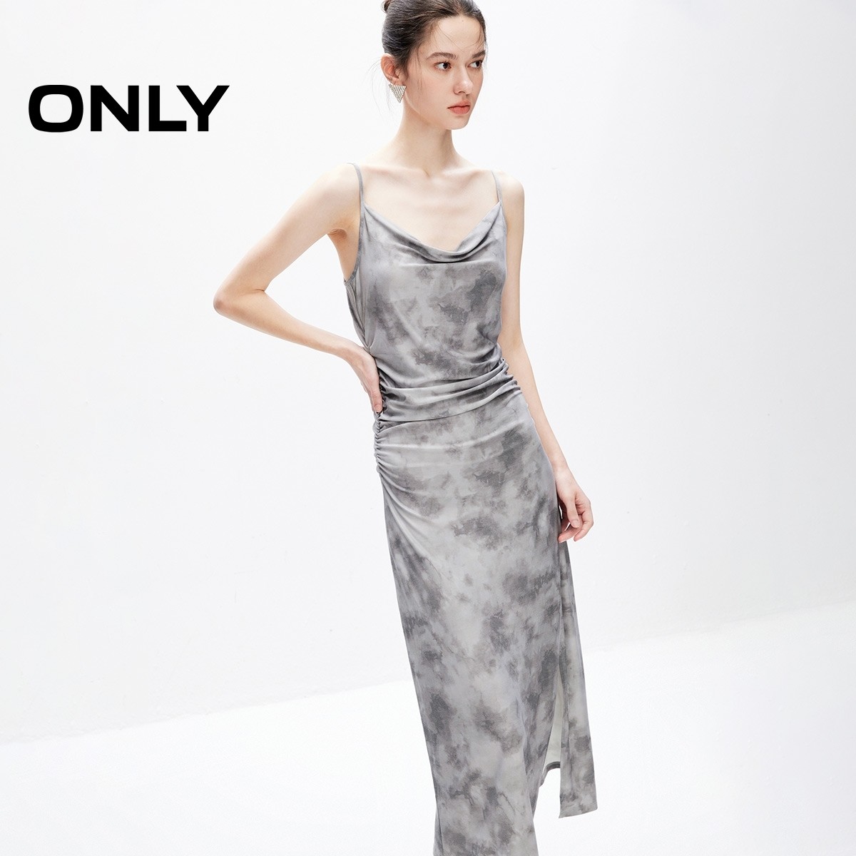 【ONLY奥莱】夏季设计感开叉长款修身吊带连衣裙女