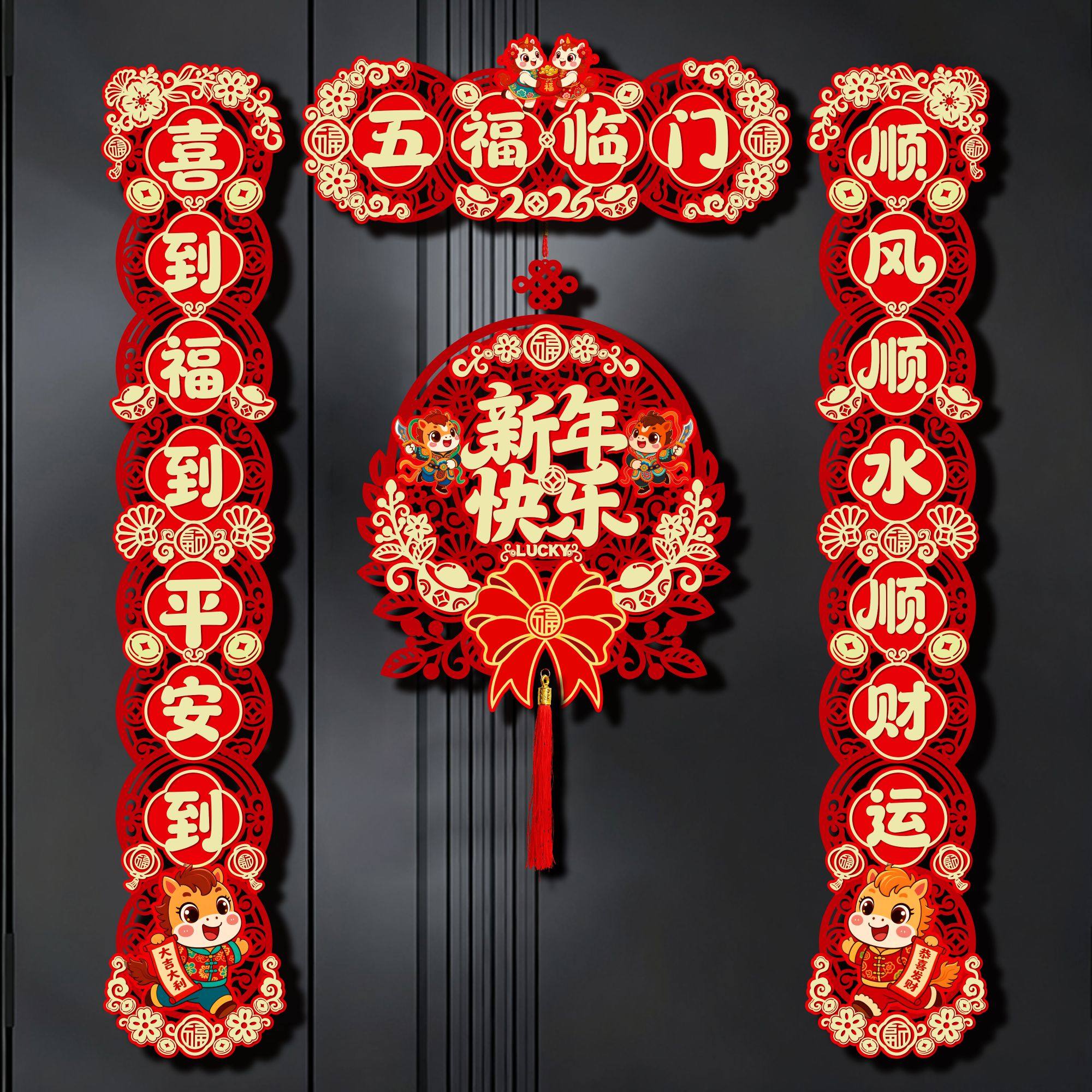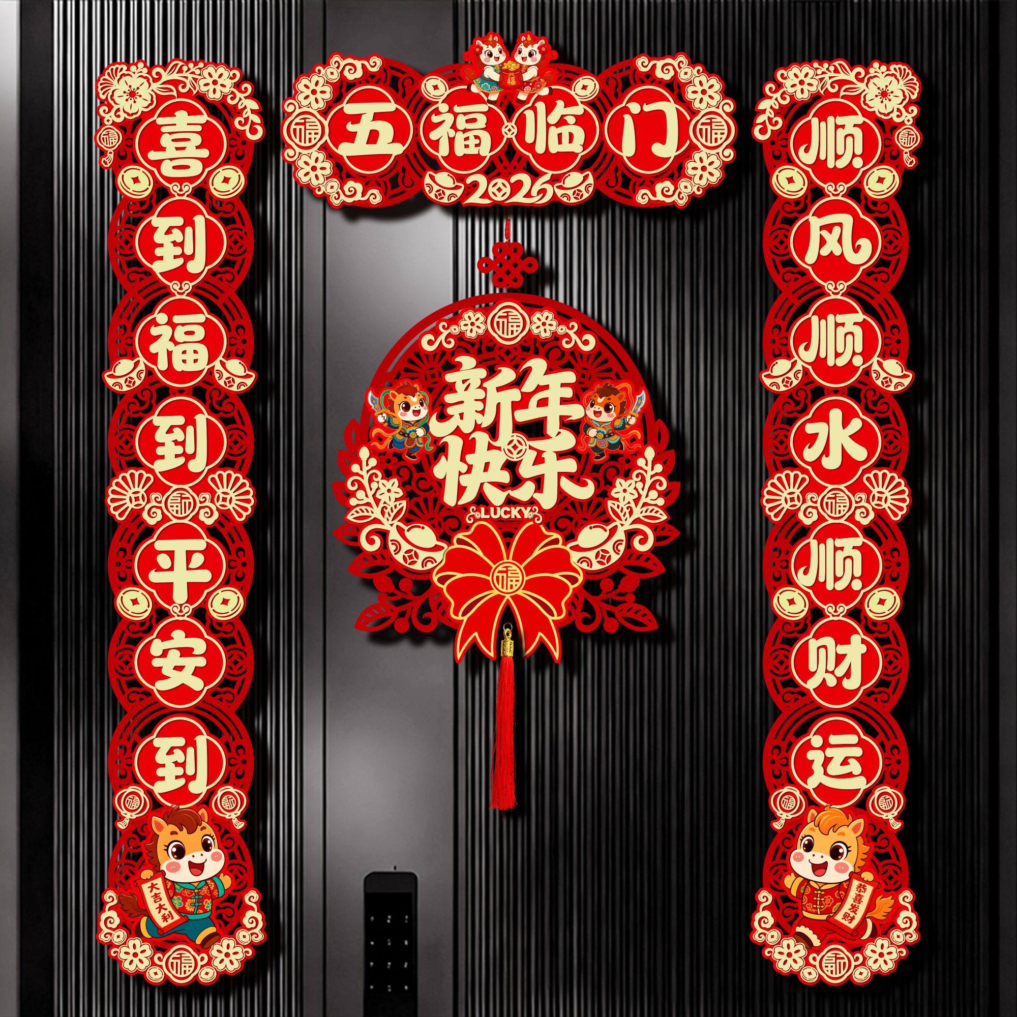 马年创意对联磁吸套装新年春节过年入户福字门贴植绒装饰布置春联