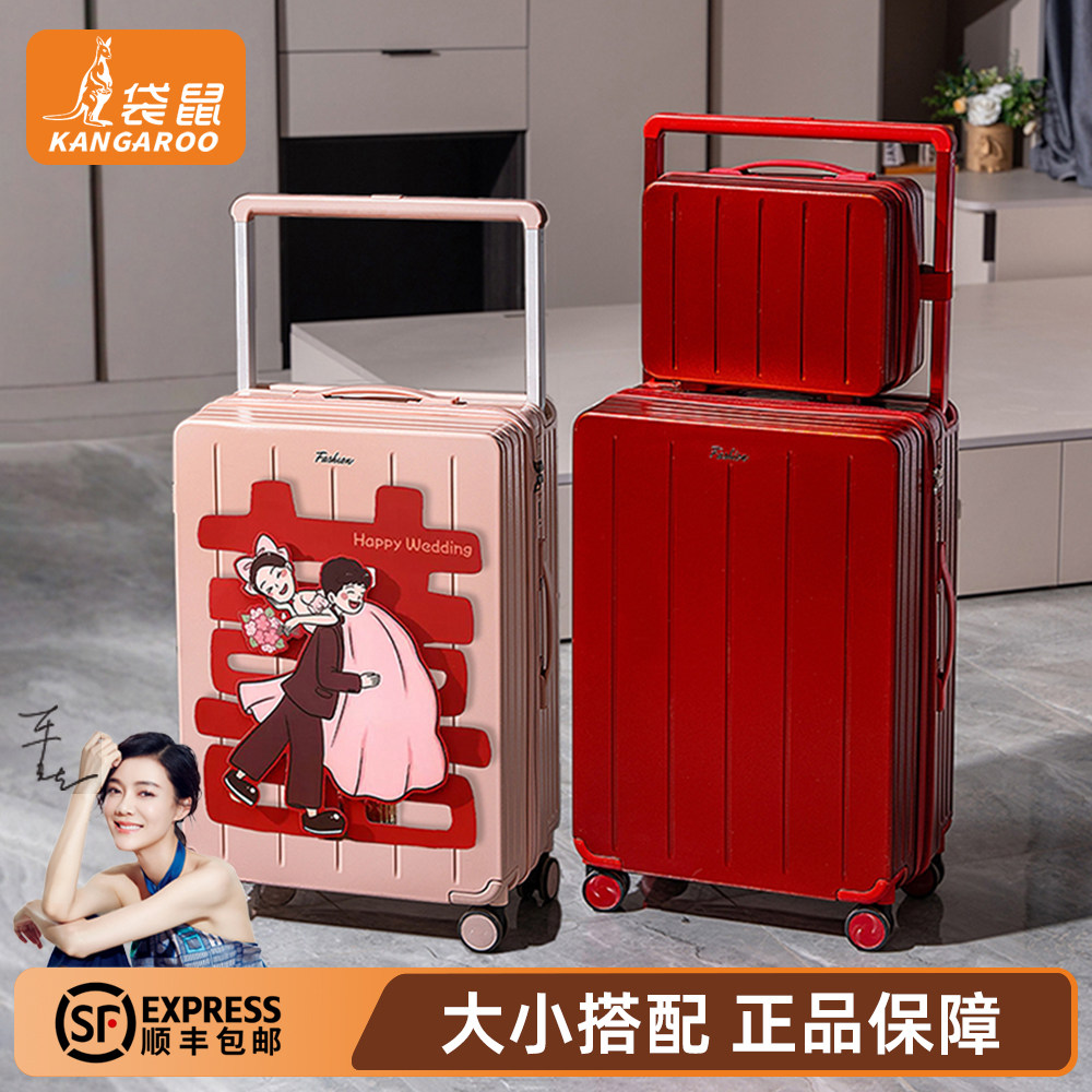 袋鼠行李箱2026新款20寸可登机宽拉杆旅行密码皮箱子24拉链粉色女