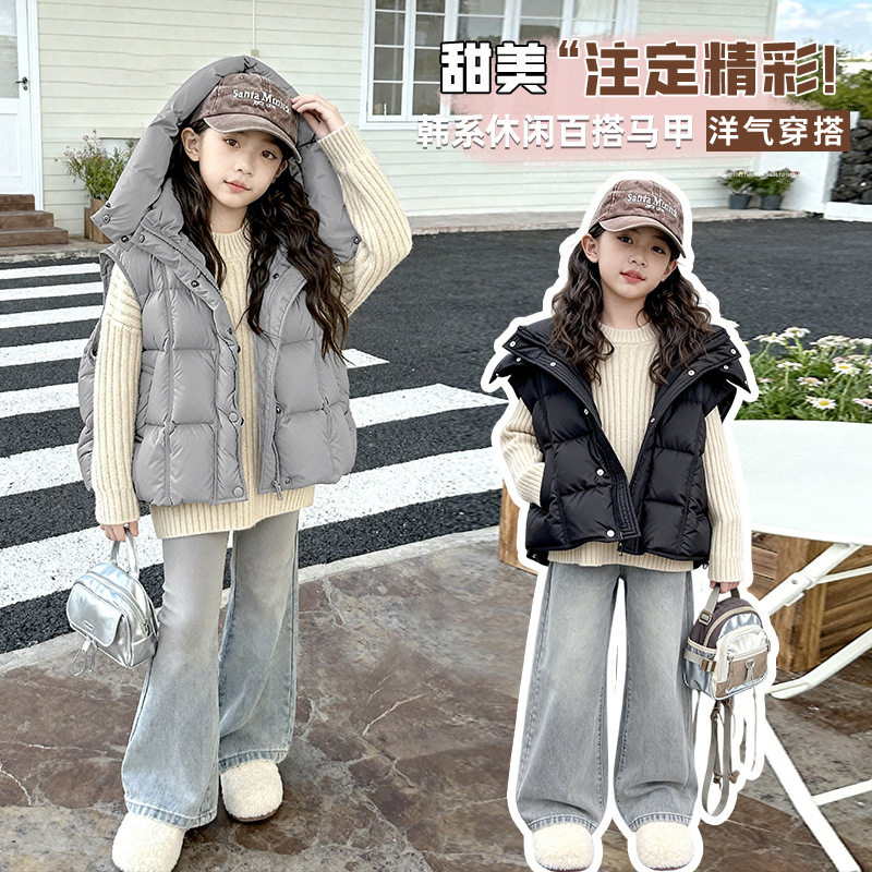 女童马甲2025新款儿童初中生冬季轻薄羽绒棉衣中大童女孩棉服冬装