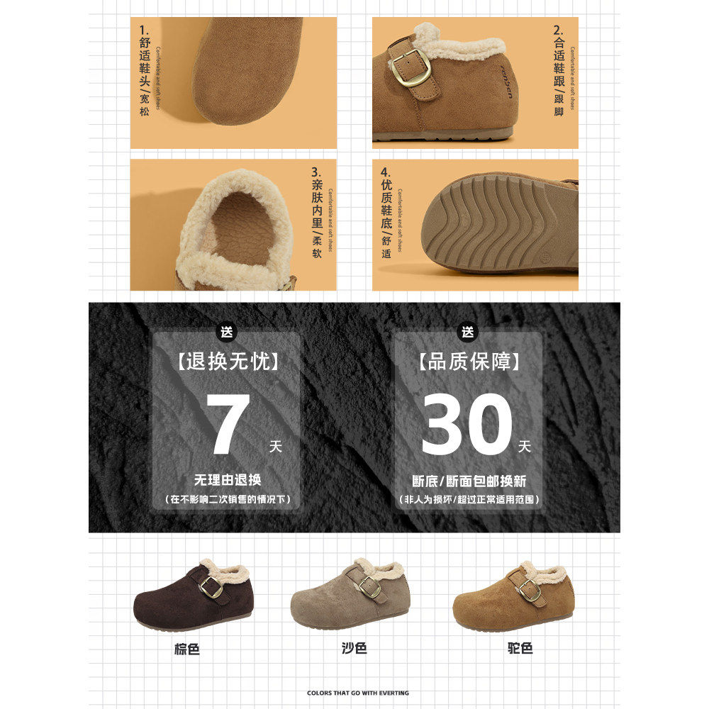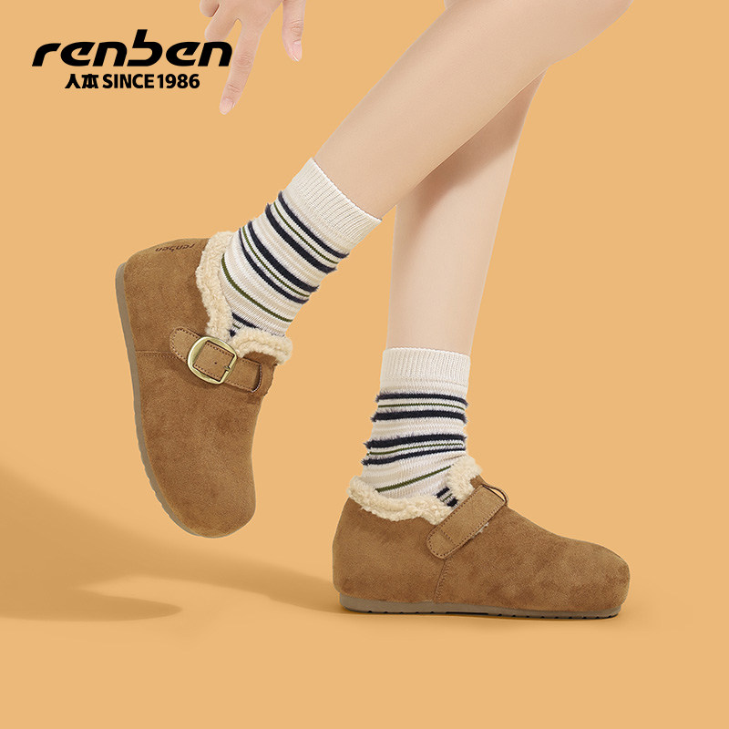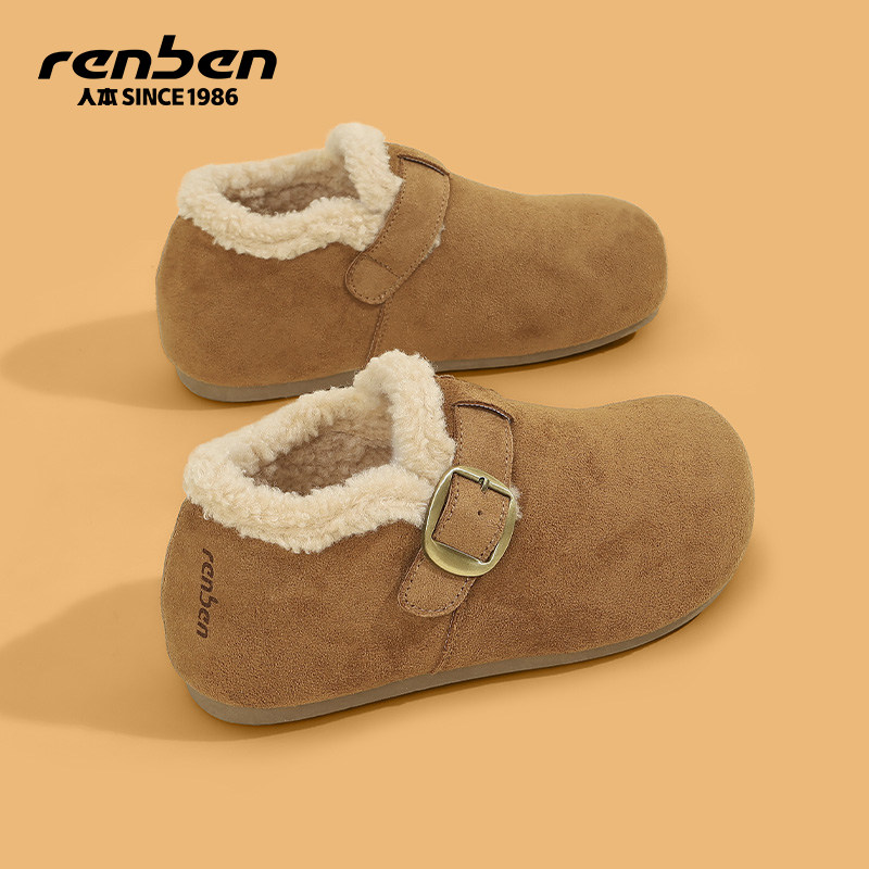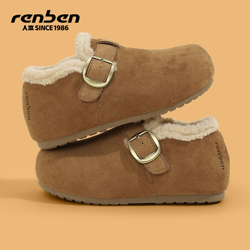 人本勃肯鞋女毛绒2025冬季新款外穿厚底内增高加绒加厚保暖二棉鞋