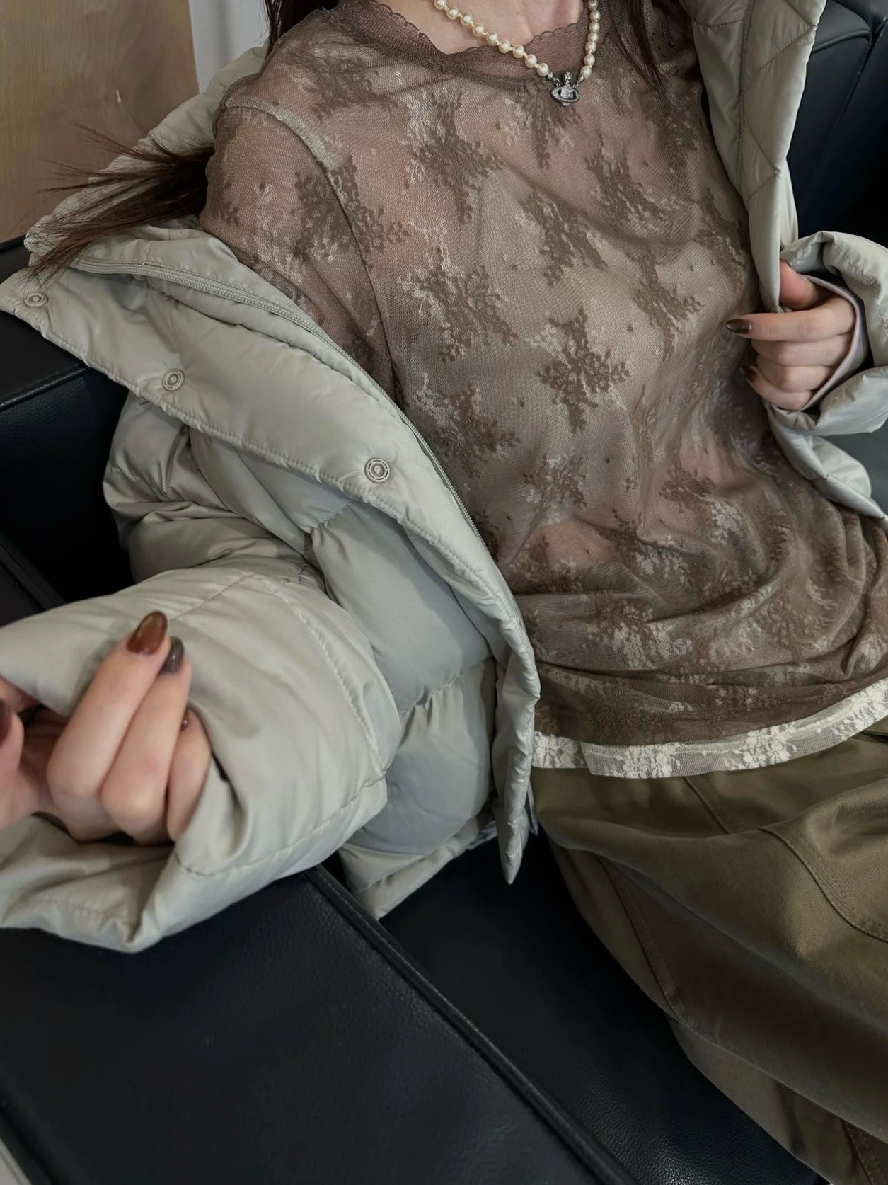 韩国单 2026年早春新款 蕾丝网纱透视小心机叠穿圆领上衣假两件套
