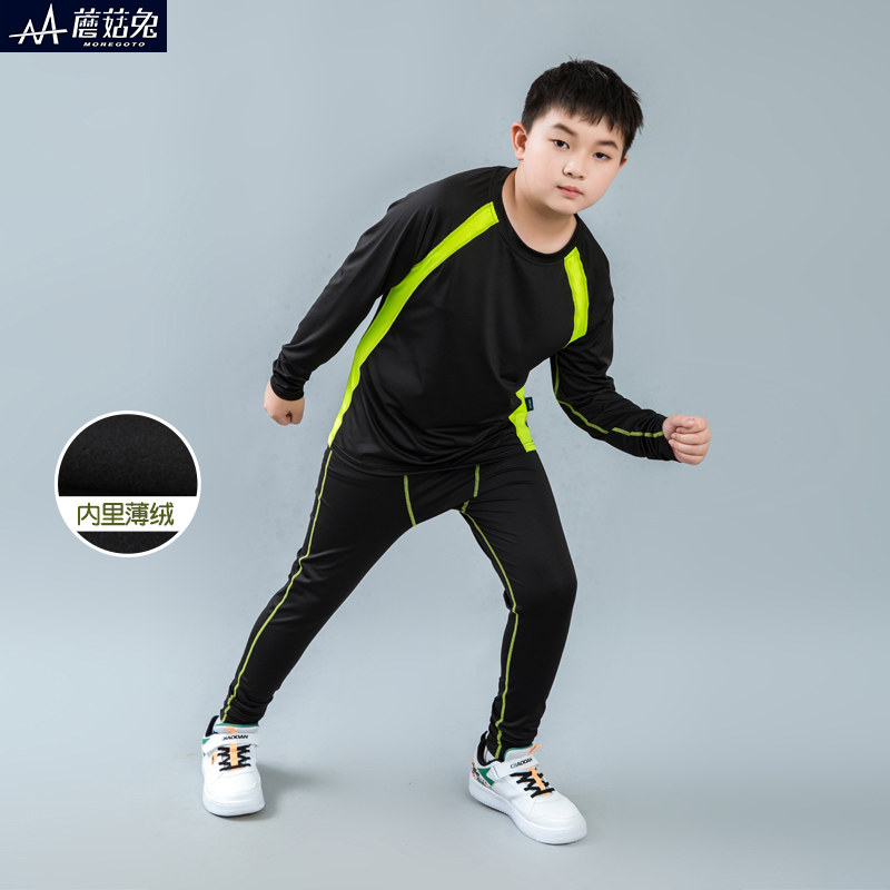 胖童薄绒训练服男童秋冬运动打底套装加绒篮球服大男孩冬季宽松版