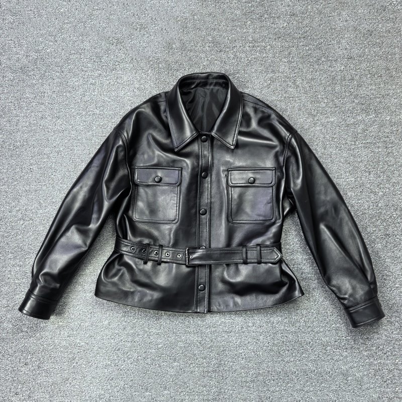 欧货2026春季新款真皮皮衣女绵羊皮系带收腰时尚百搭单排扣皮外套