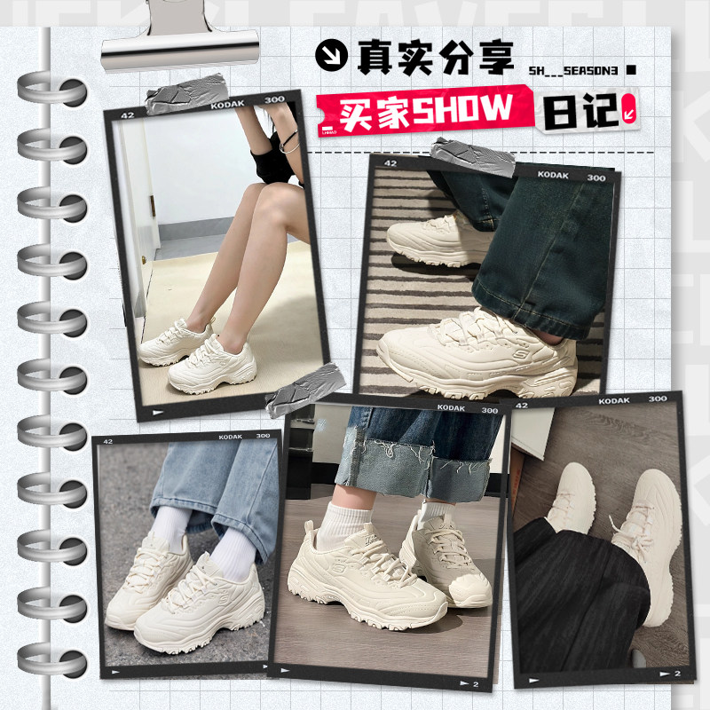 斯凯奇女鞋新款官方冬季休闲鞋子白色老爹鞋熊猫鞋增高女款运动鞋