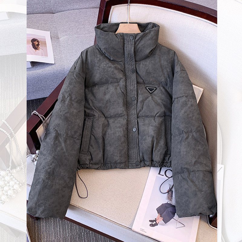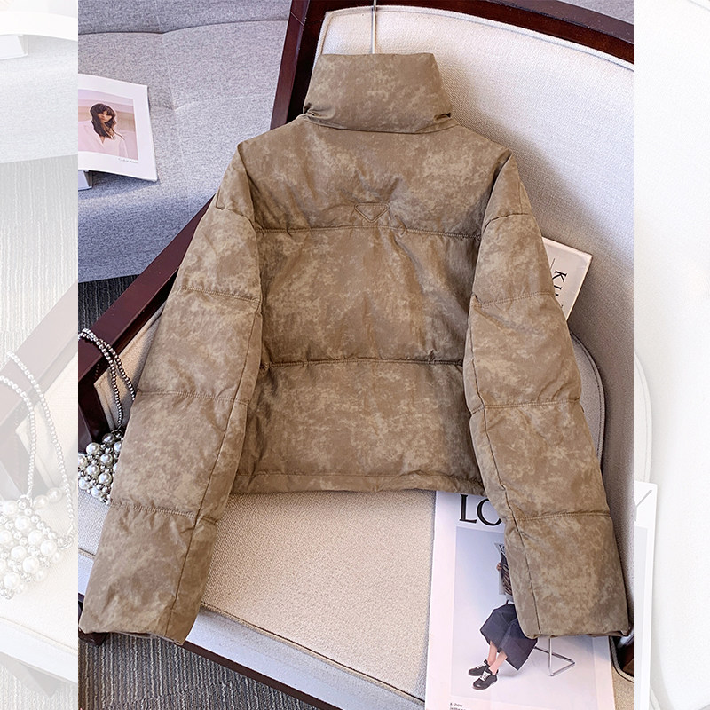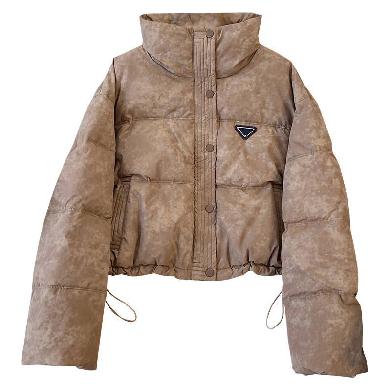311线报网描述:美式卡其色立领短款羽绒服女新款面包服外套