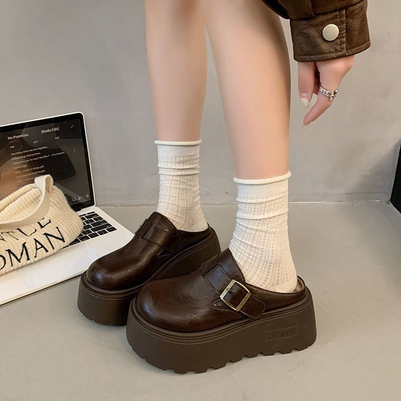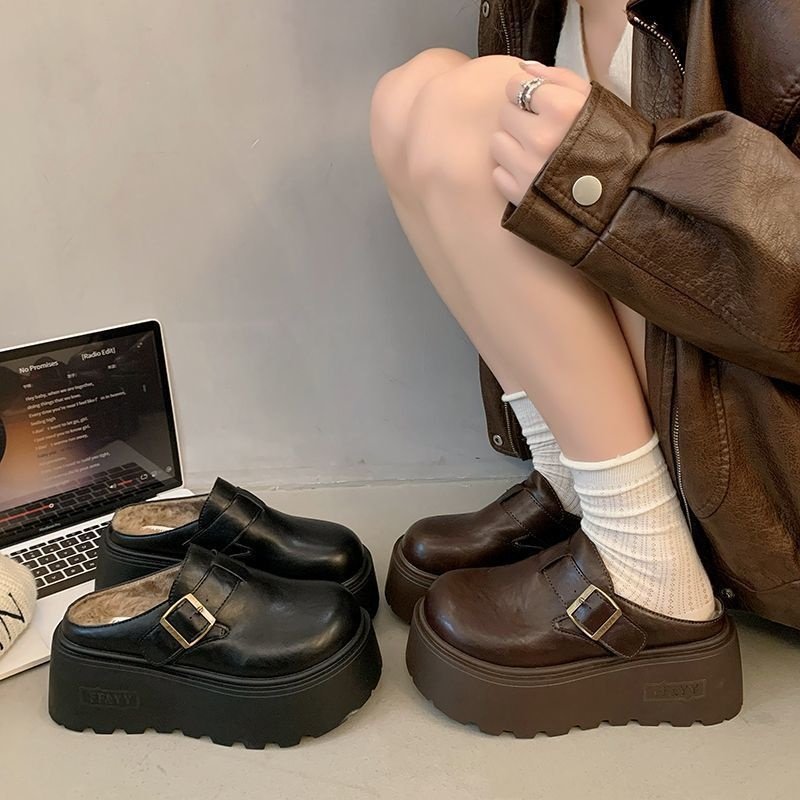 包头半拖毛毛拖鞋女外穿棉鞋厚底增高8CM加绒勃肯鞋女秋冬季新款