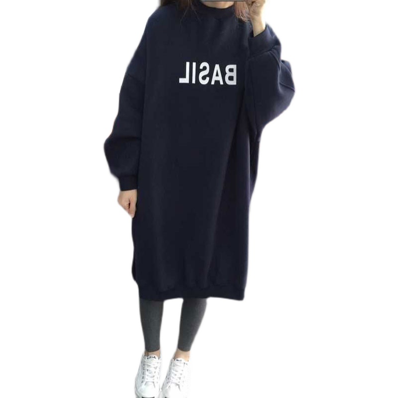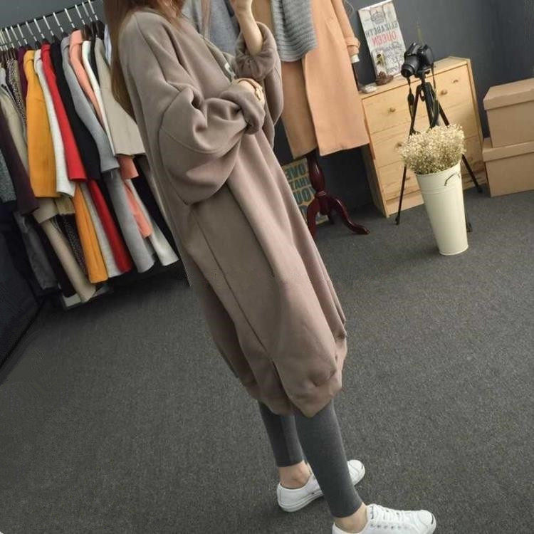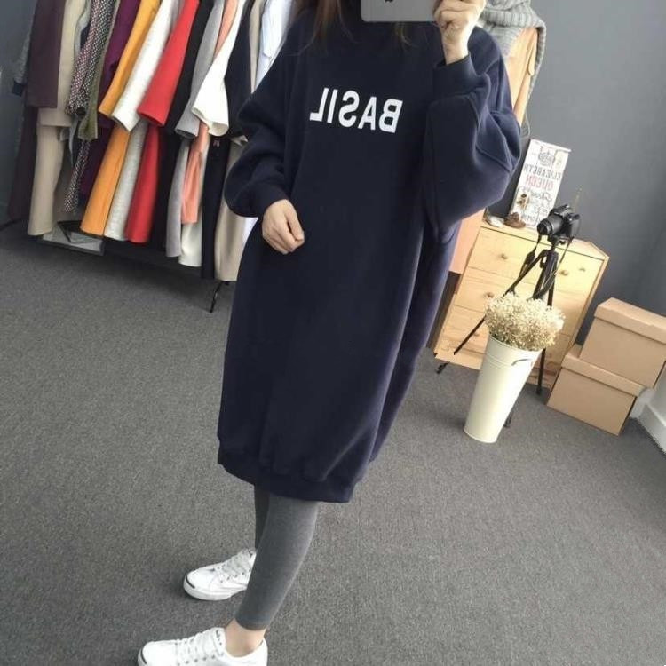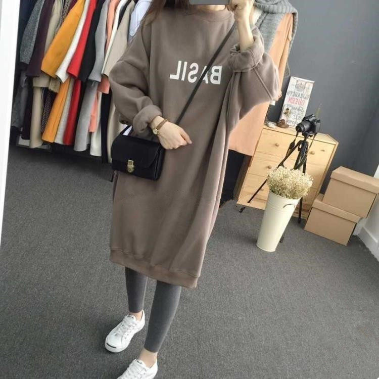 秋冬大码女装胖mm宽松显瘦印花字母中长款加绒卫衣减龄连衣裙