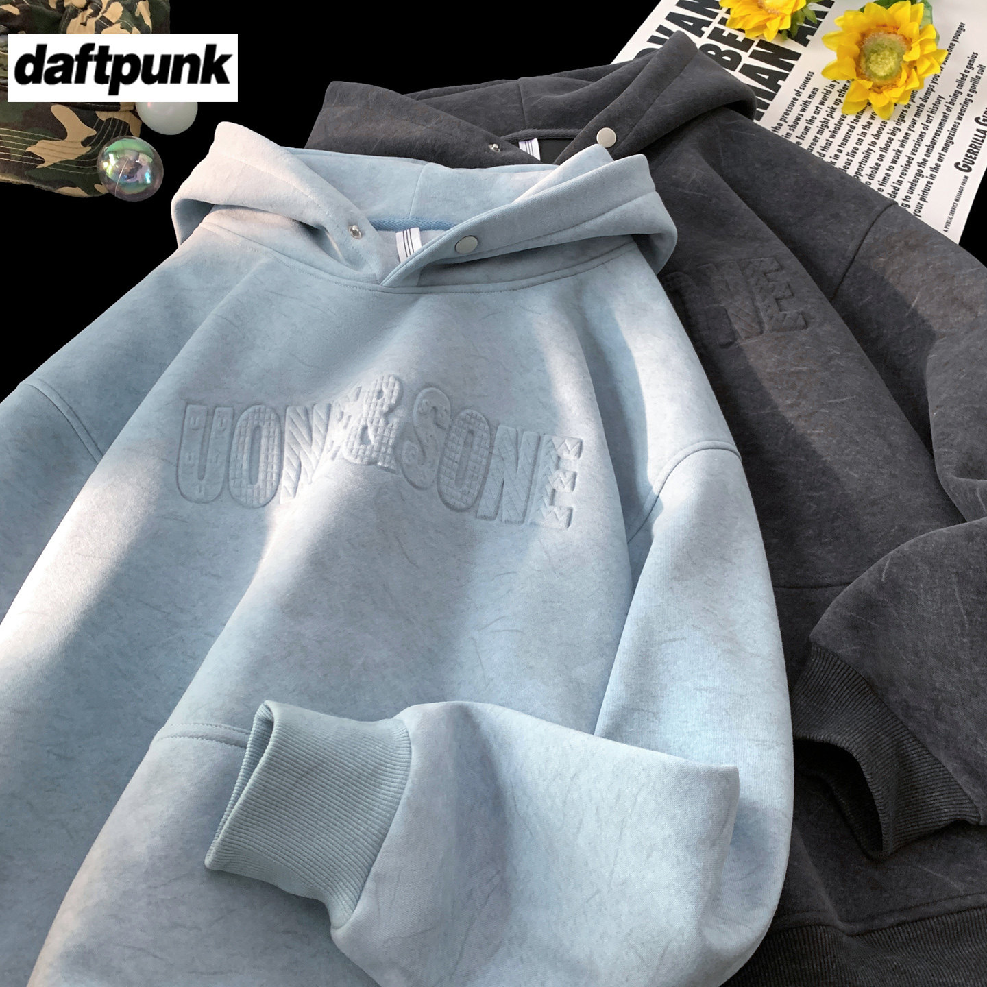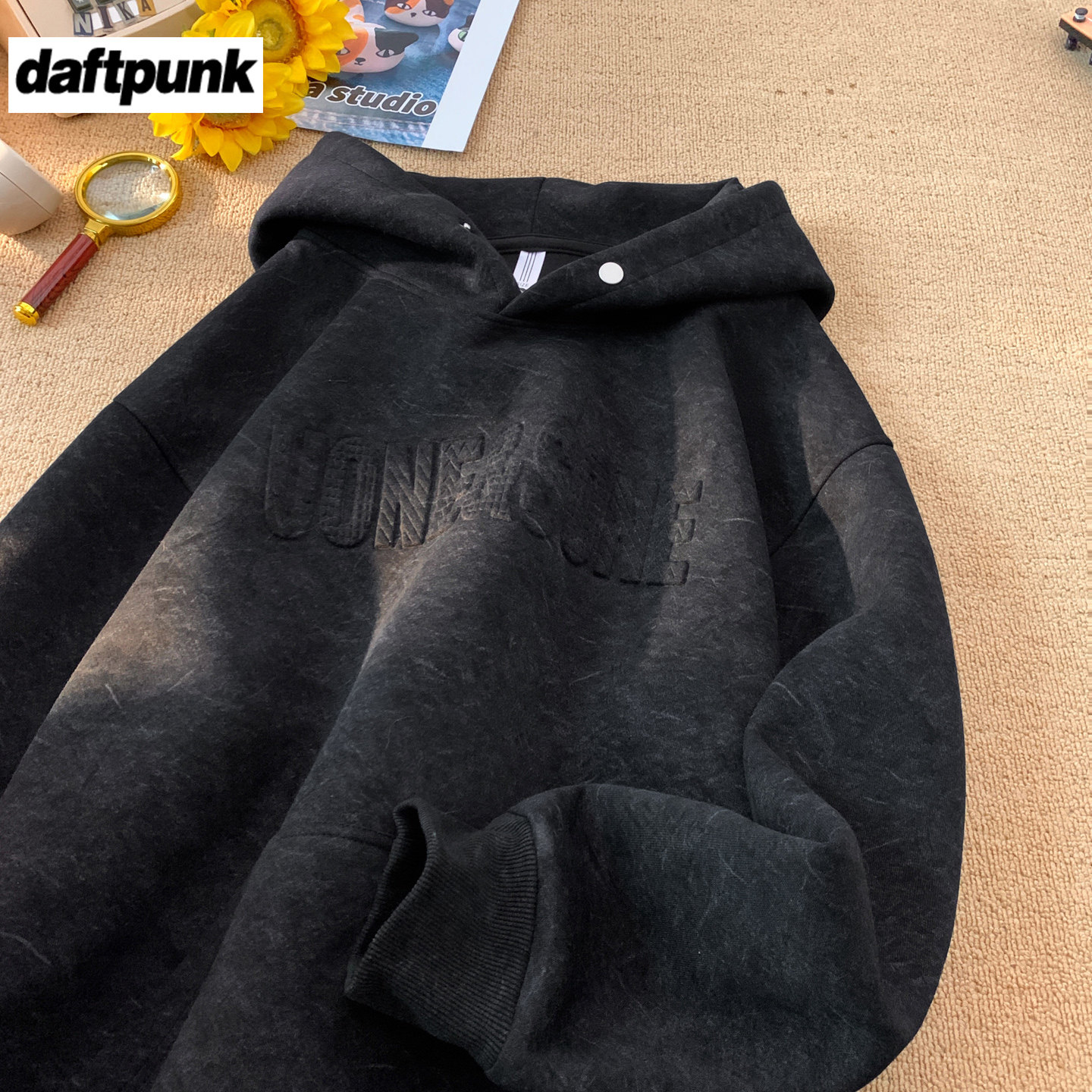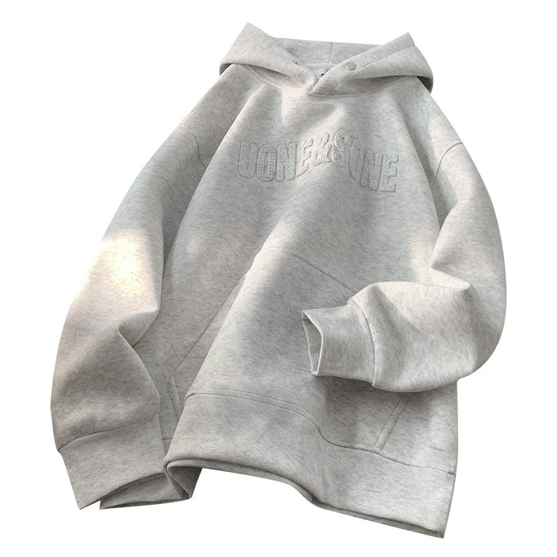 重磅钢印字母连帽卫衣男女款砂洗潮牌痞帅宽松休闲硬挺带帽衫外套