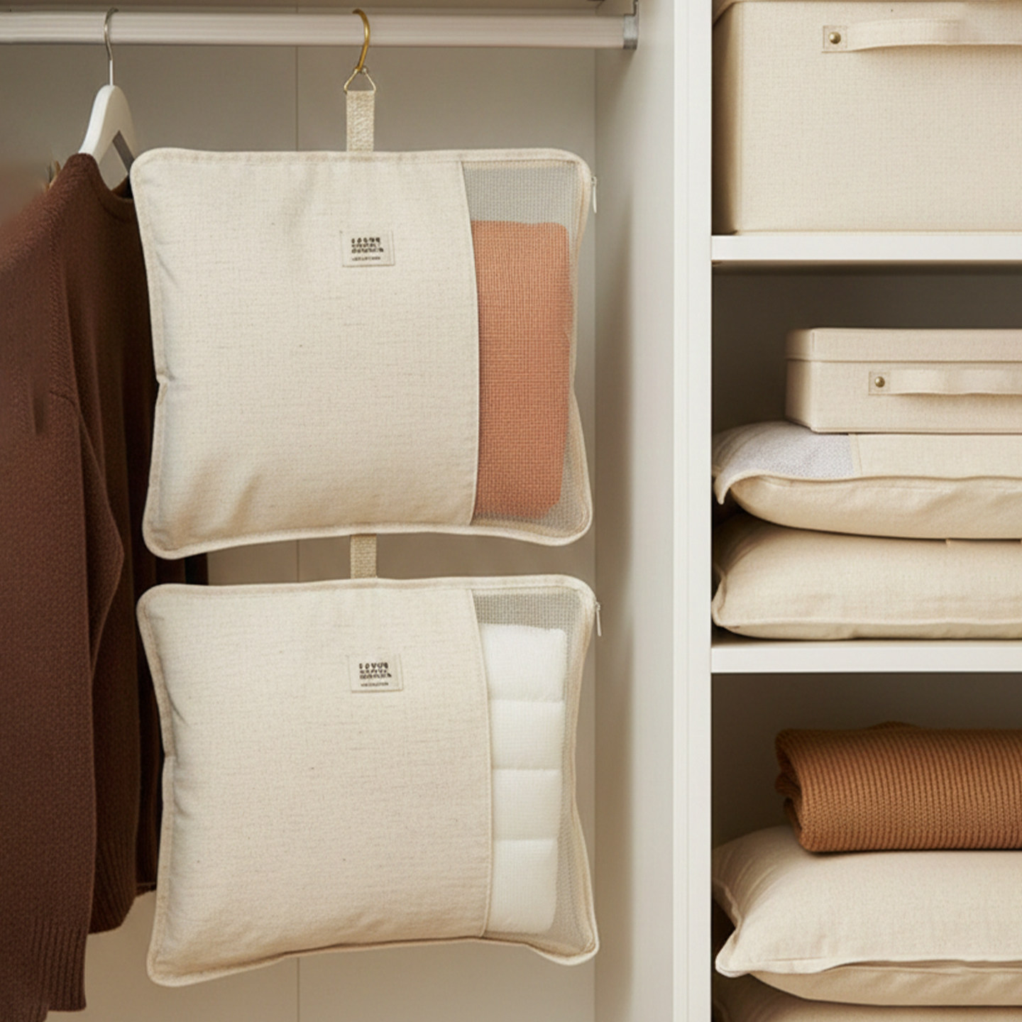 衣柜悬挂式羽绒服收纳袋四件套专用收纳挂袋可视大容量壁挂储物包