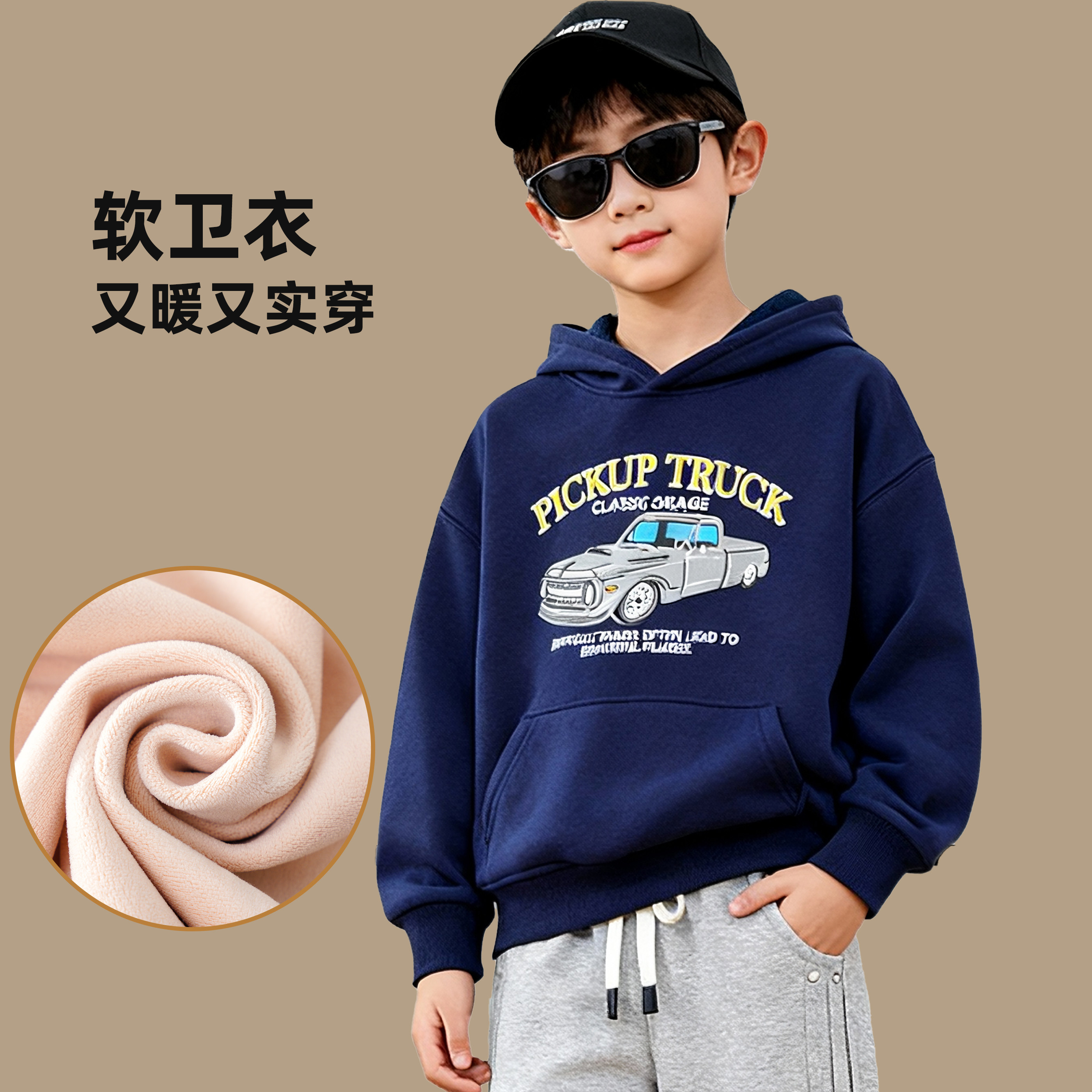男女童加绒卫衣2025秋冬季新款儿童加厚连帽上衣中大童保暖帽衫