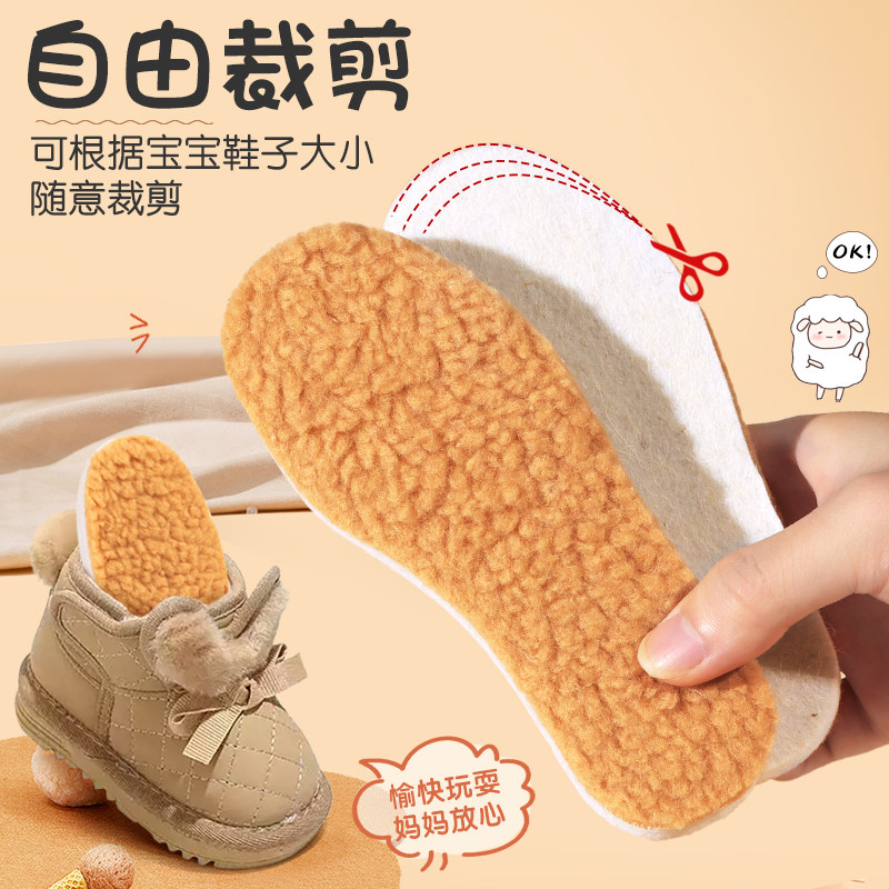 儿童鞋垫冬季加绒小孩专用羊毛保暖冬天吸汗防臭可裁剪宝宝棉鞋垫