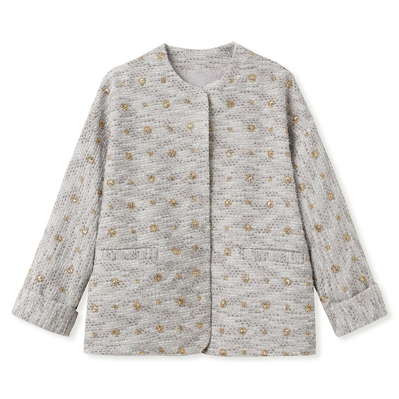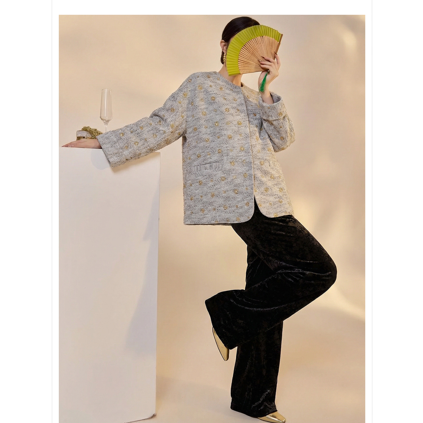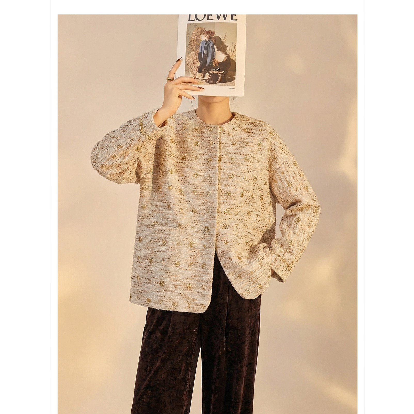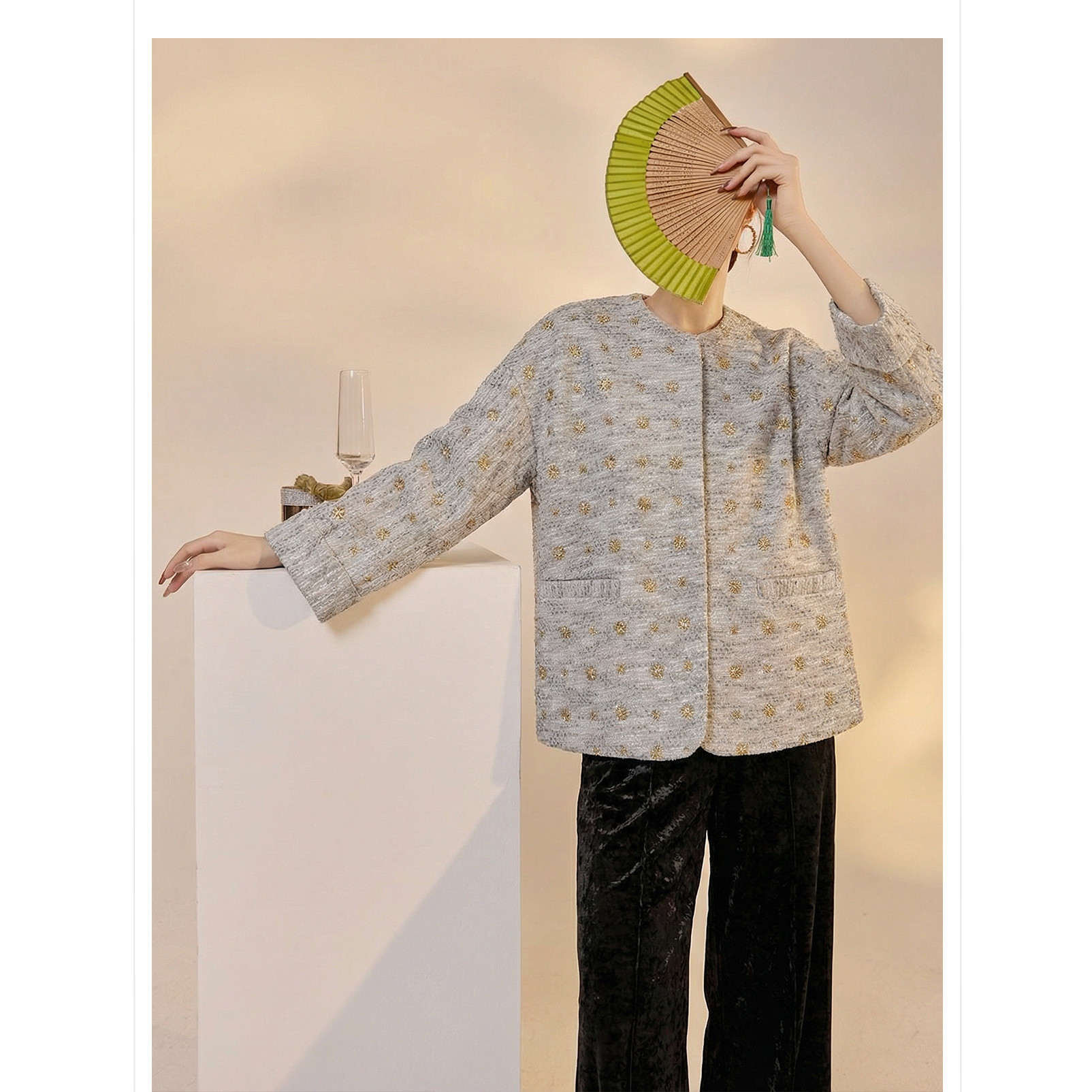 2026春装新款 轻奢新中式重工钉珠小香风长袖休闲毛呢外套