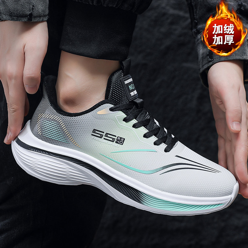 新款皮面跑步鞋男款轻弹缓震运动鞋青少年训练耐磨透气运动鞋加绒