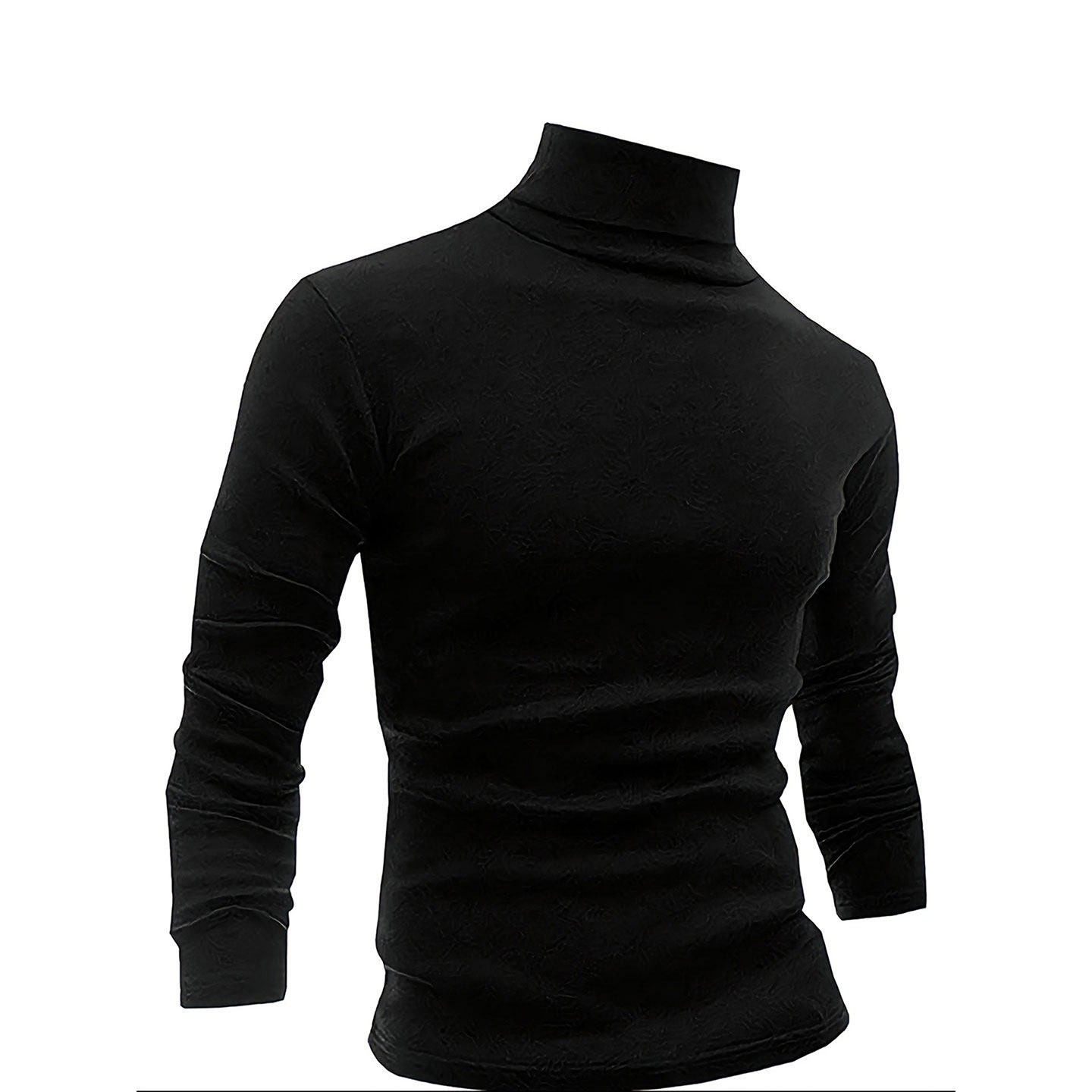 311线报网描述:-黑色半高领毛衣男冬季美式修身显瘦针织衫