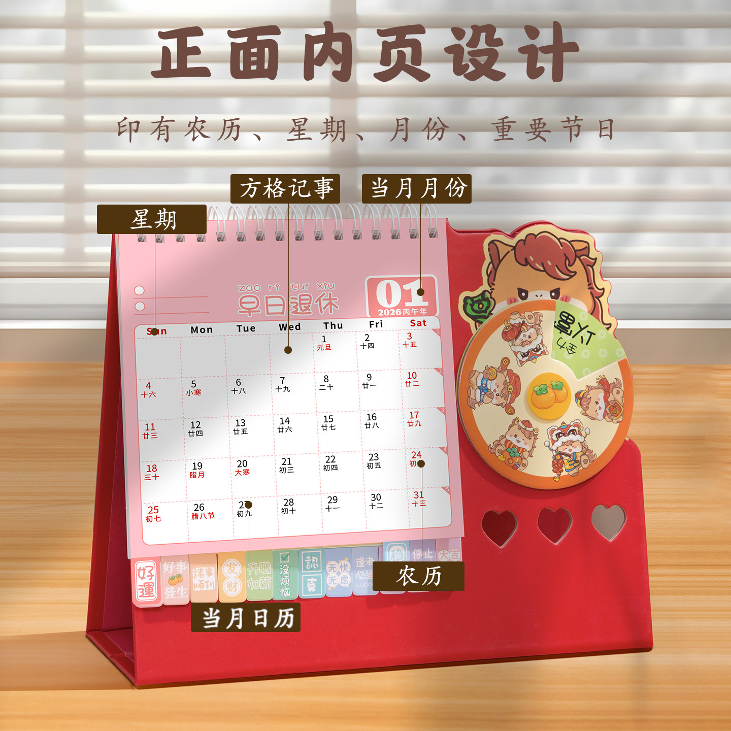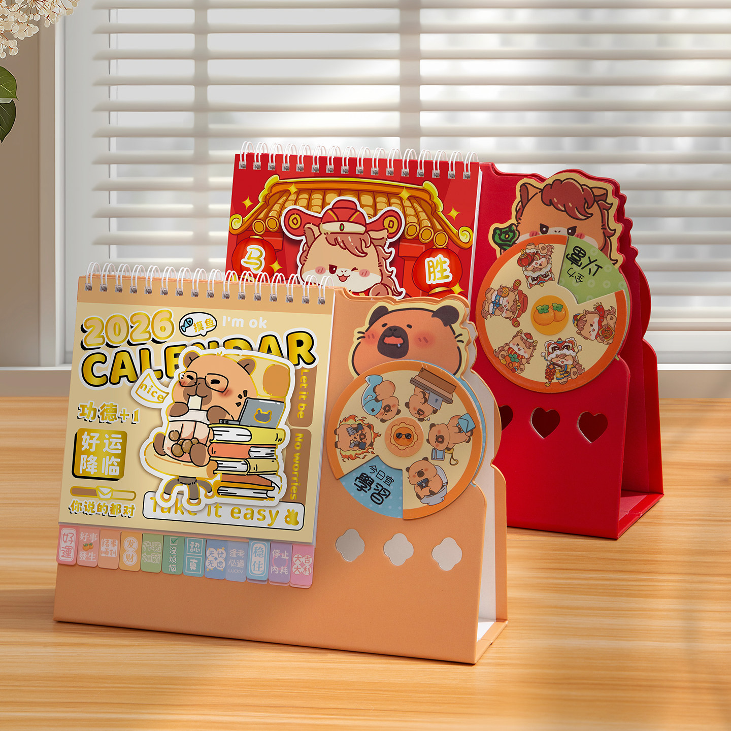 幸运转盘台历2026年卡皮巴拉日历马年创意桌面摆件多功能记事本迷你小月历学生学习计划表办公打卡logo定制