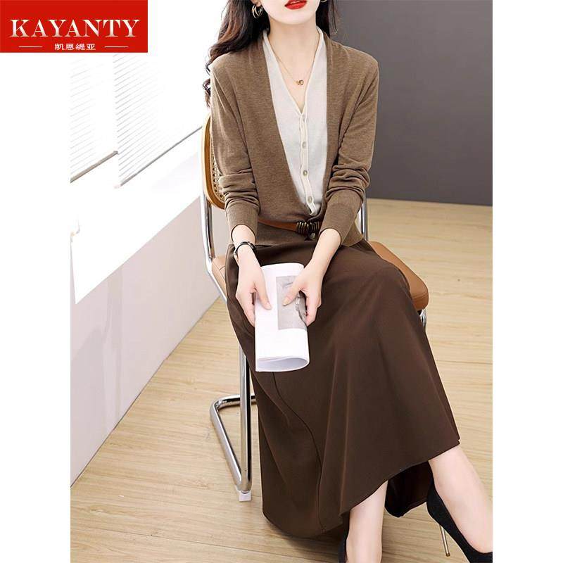 KAYANTY针织连衣裙2025新气质春秋季女神范高级感半身裙两件套装