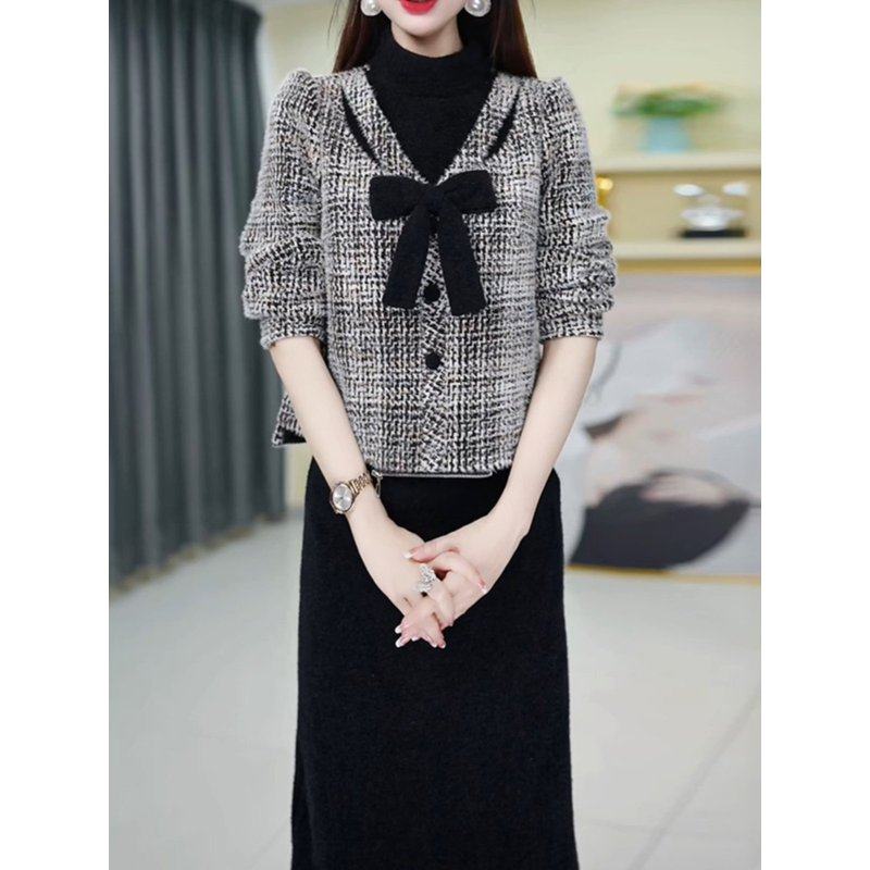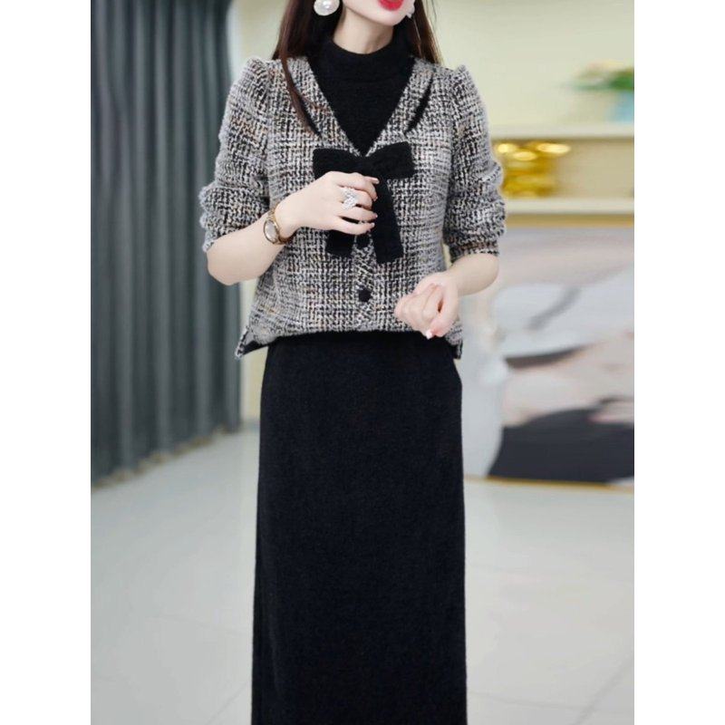 小香风套装连衣裙2025新款爆款女秋冬季时尚轻奢高级感两件套裙子