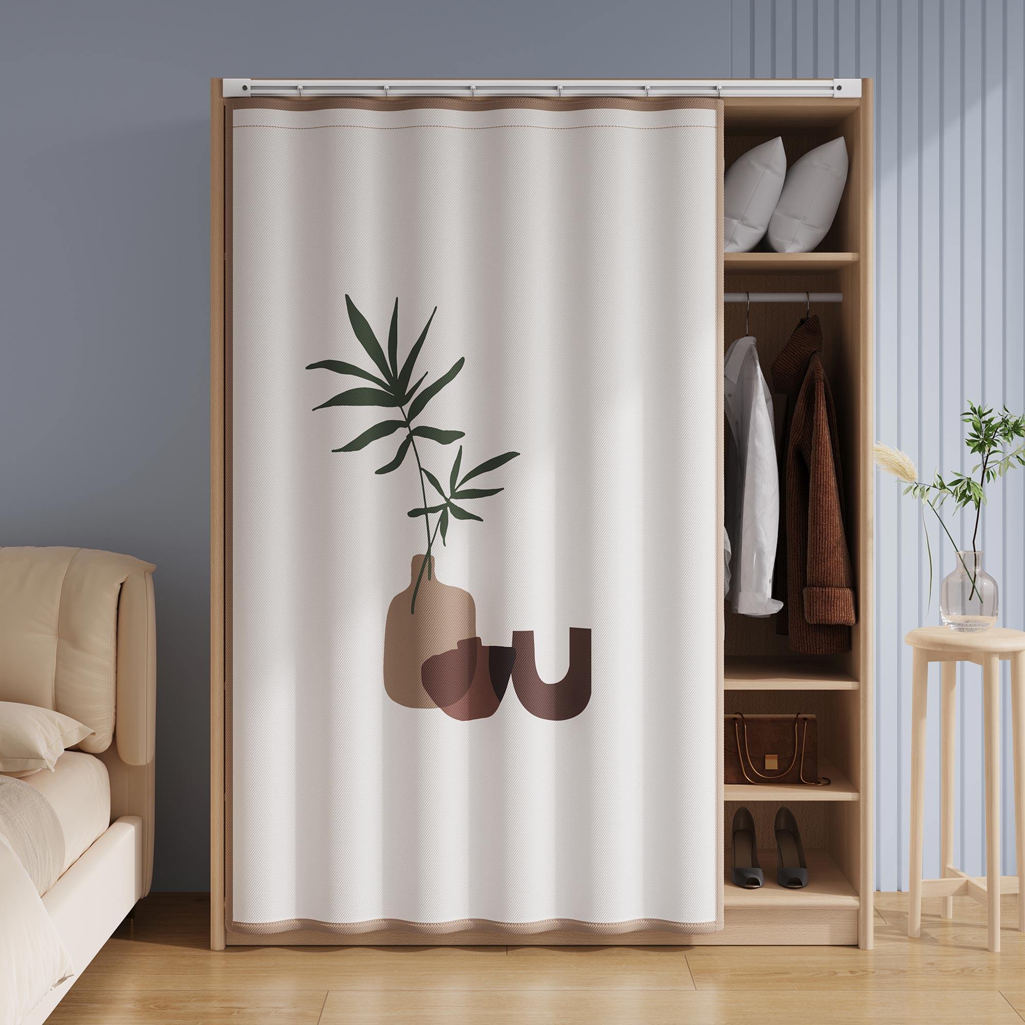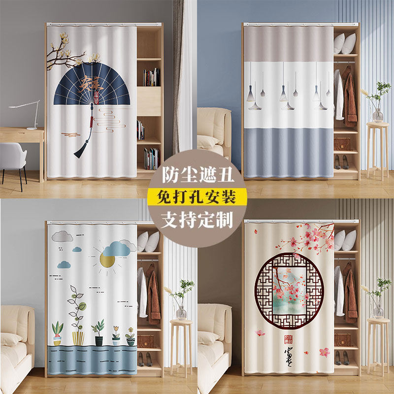 衣柜防尘帘免打孔无门柜子遮挡帘书柜置物架滑轨式拉帘鞋柜遮丑帘