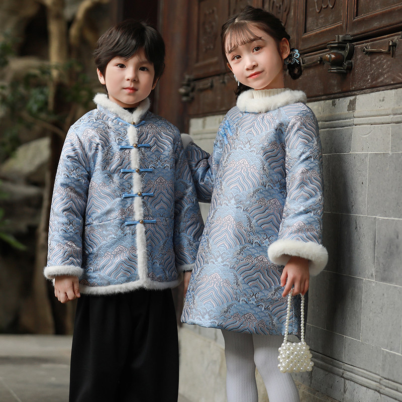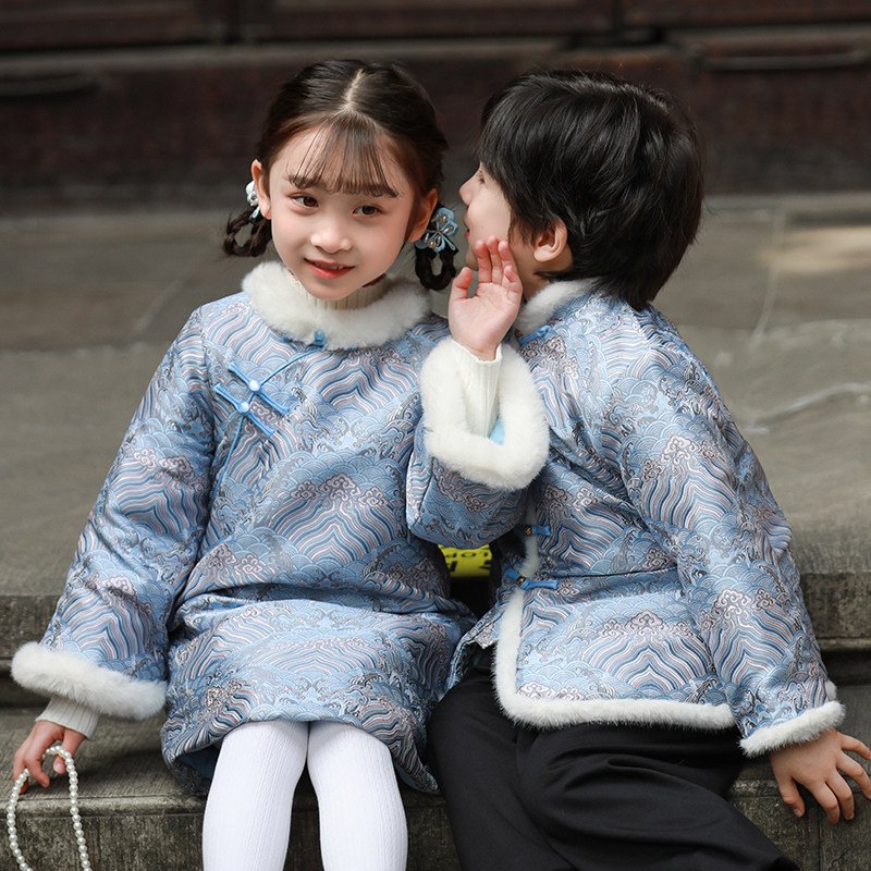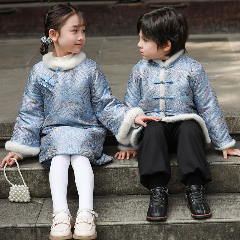 儿童拜年服男童唐装冬季女童旗袍加厚中国风童装兄妹新年棉服外套