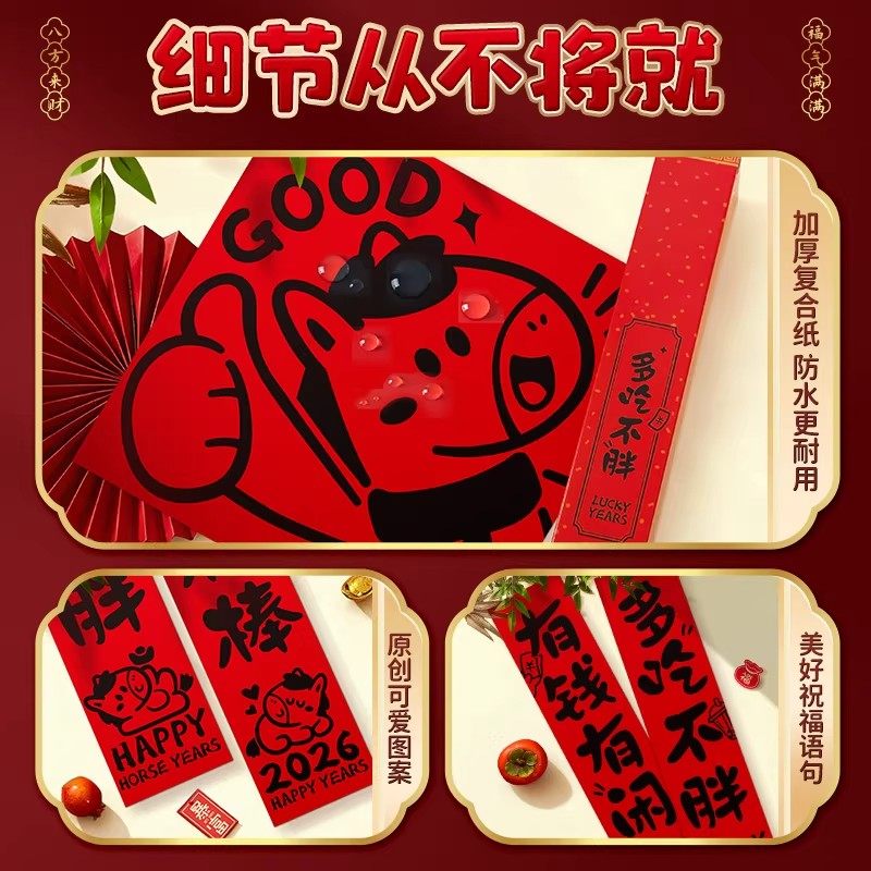 2026马年对联新款创意年轻人春联自带背胶入户门装饰新年门贴磁吸