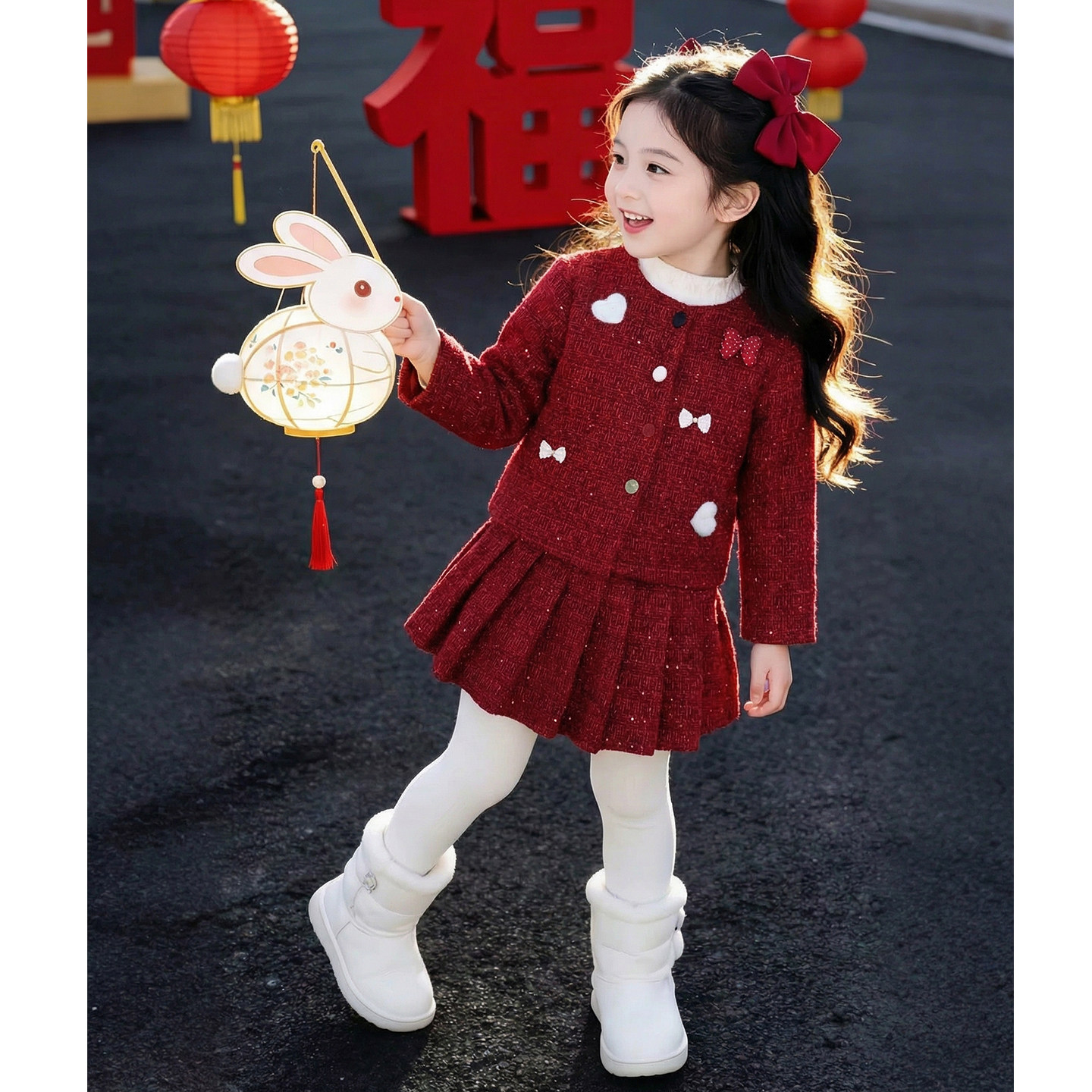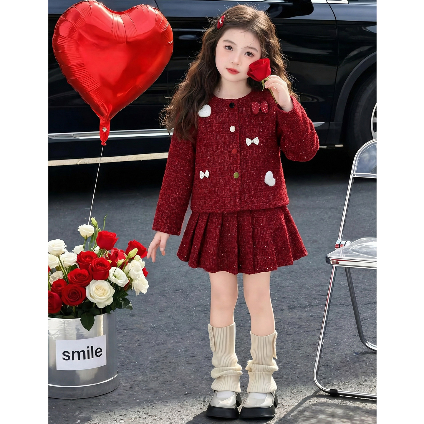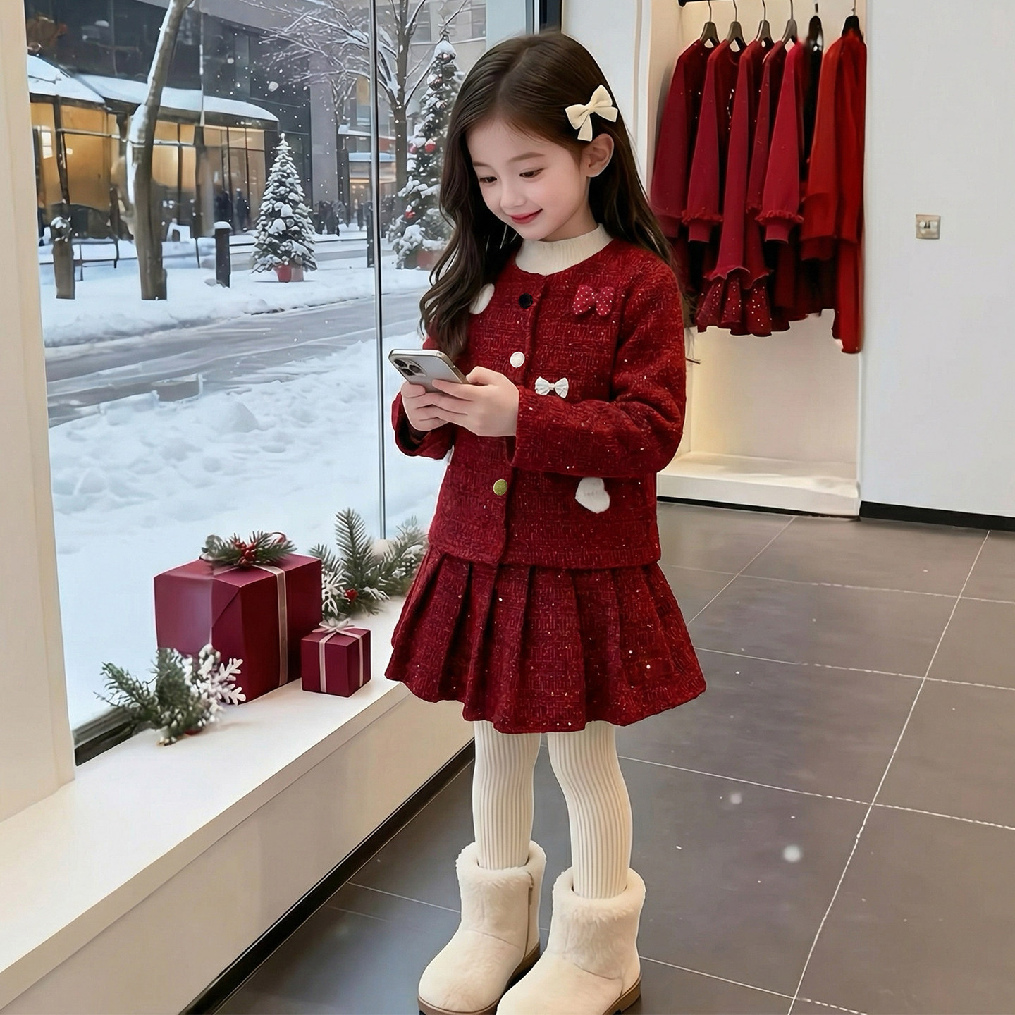 女童冬装套装2026新款儿童洋气时髦爆款红色加厚女孩小香风两件套